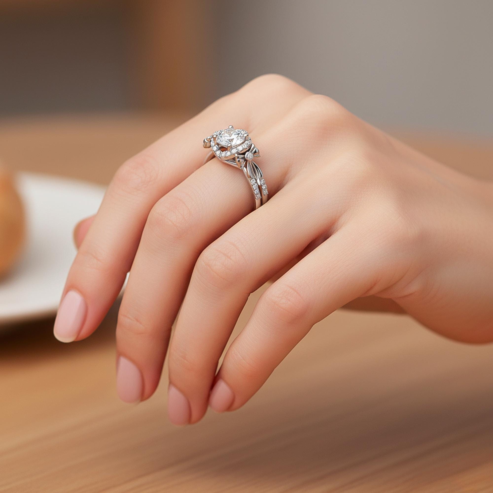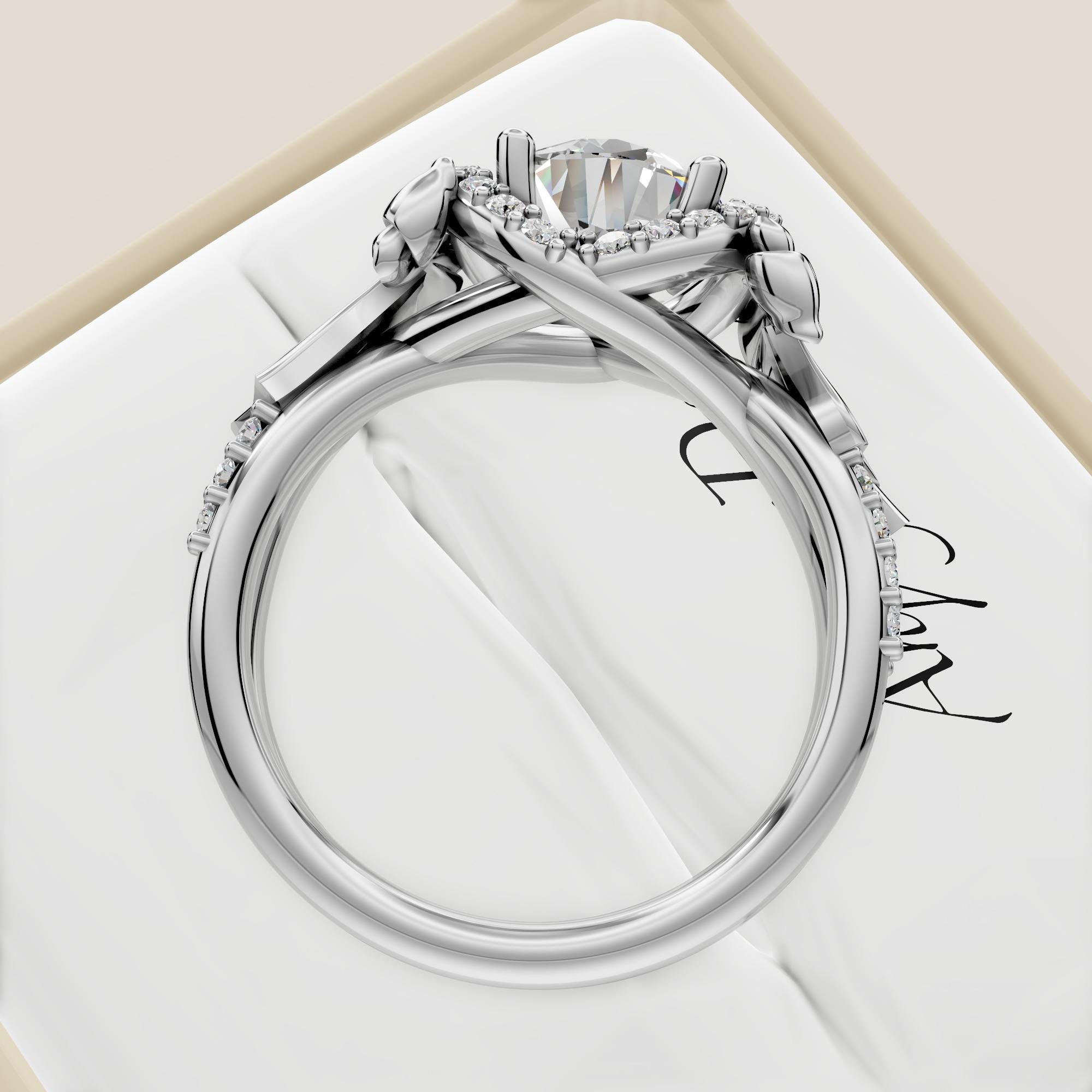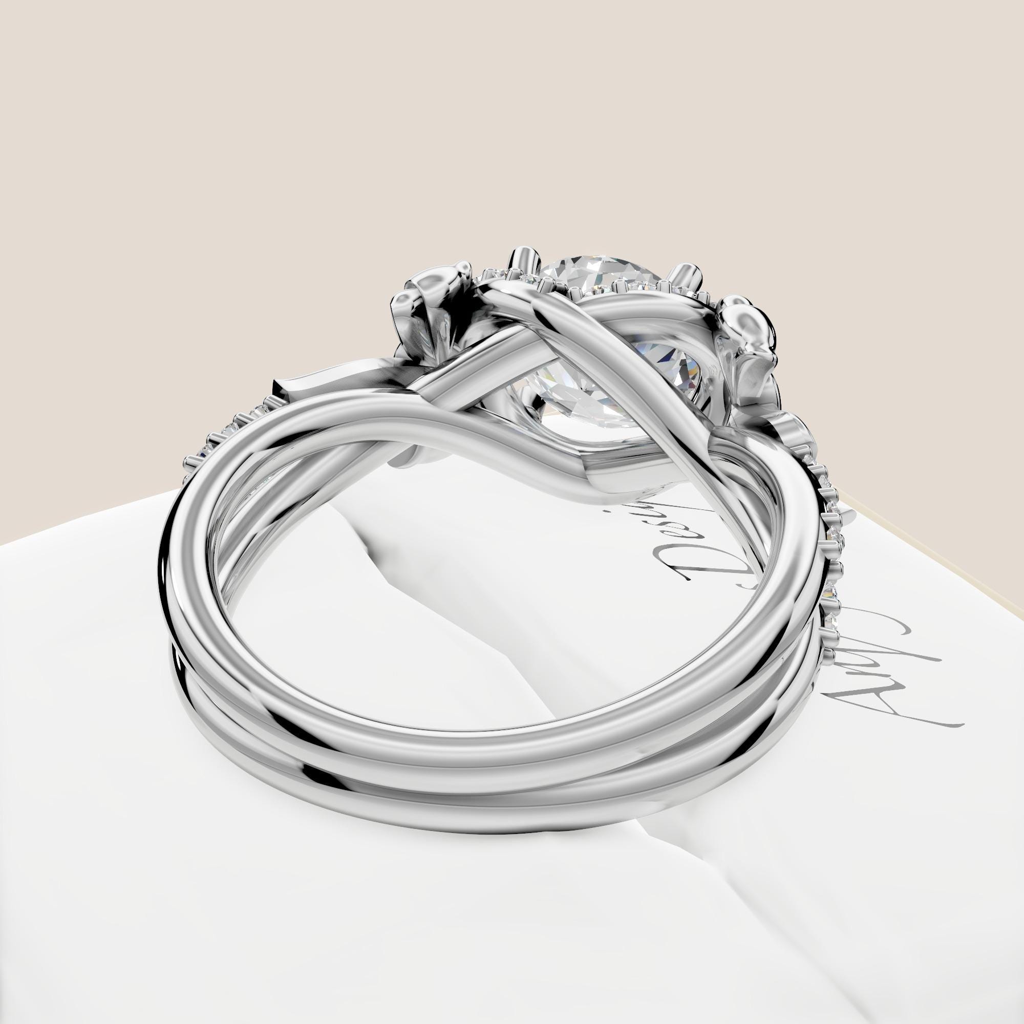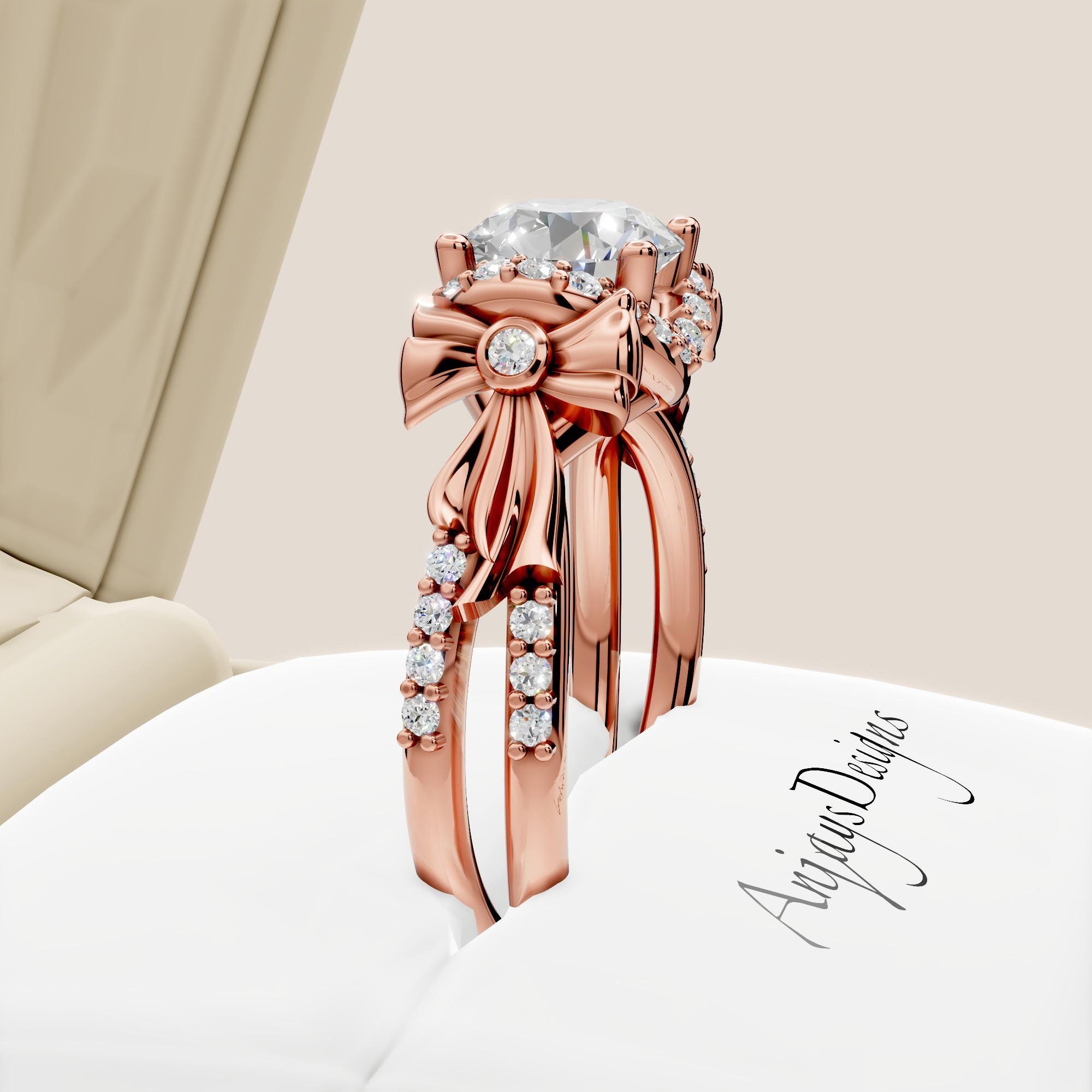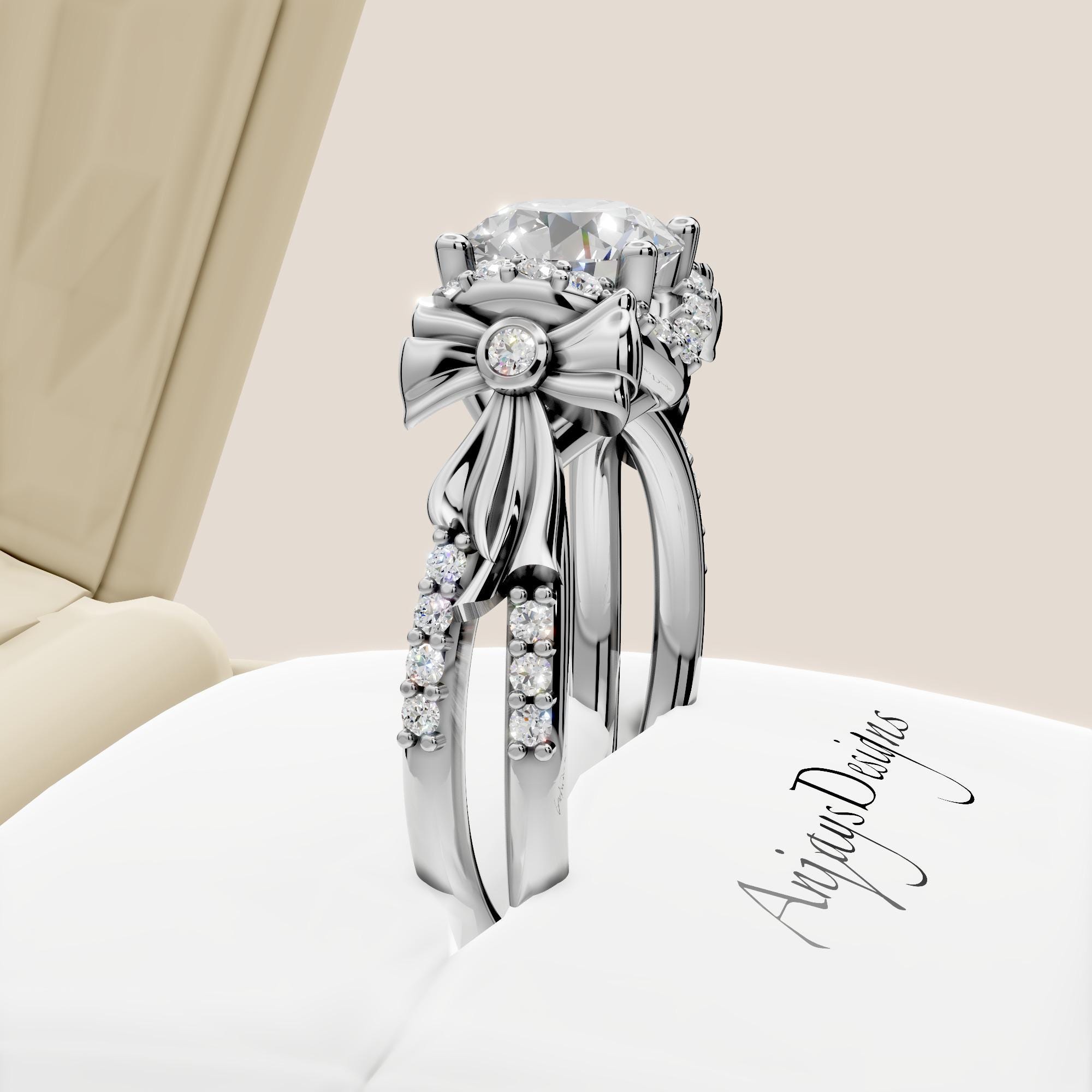 Propose your love with a bow tie ring as unique and beautiful as your lover! This stunning 1ct diamond engagement ring features a beautiful bow tie design on each side of the lab-grown round-cut diamond center stone. Made in 14k white gold, this diamond bow engagement ring blends timelessness and uniqueness together!
