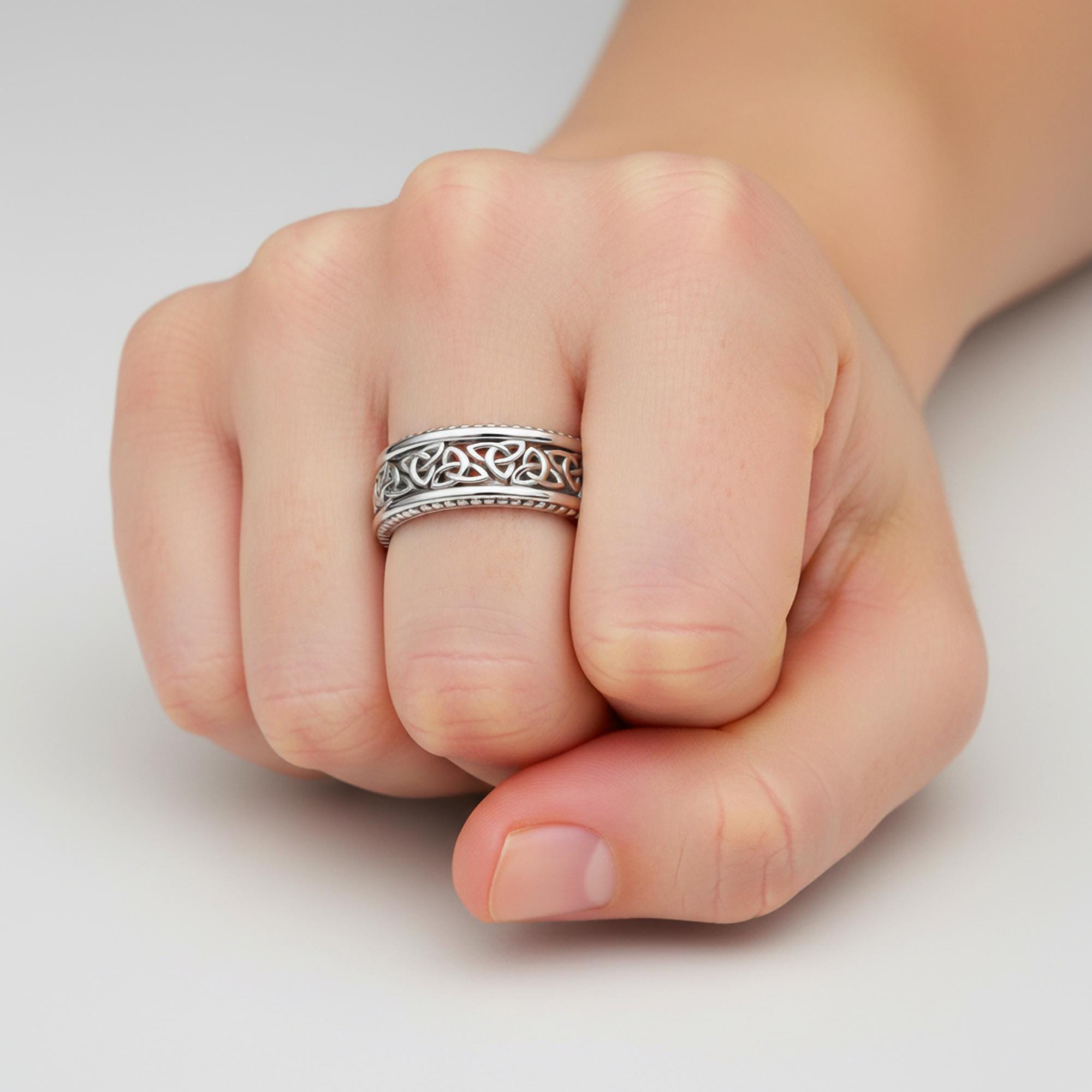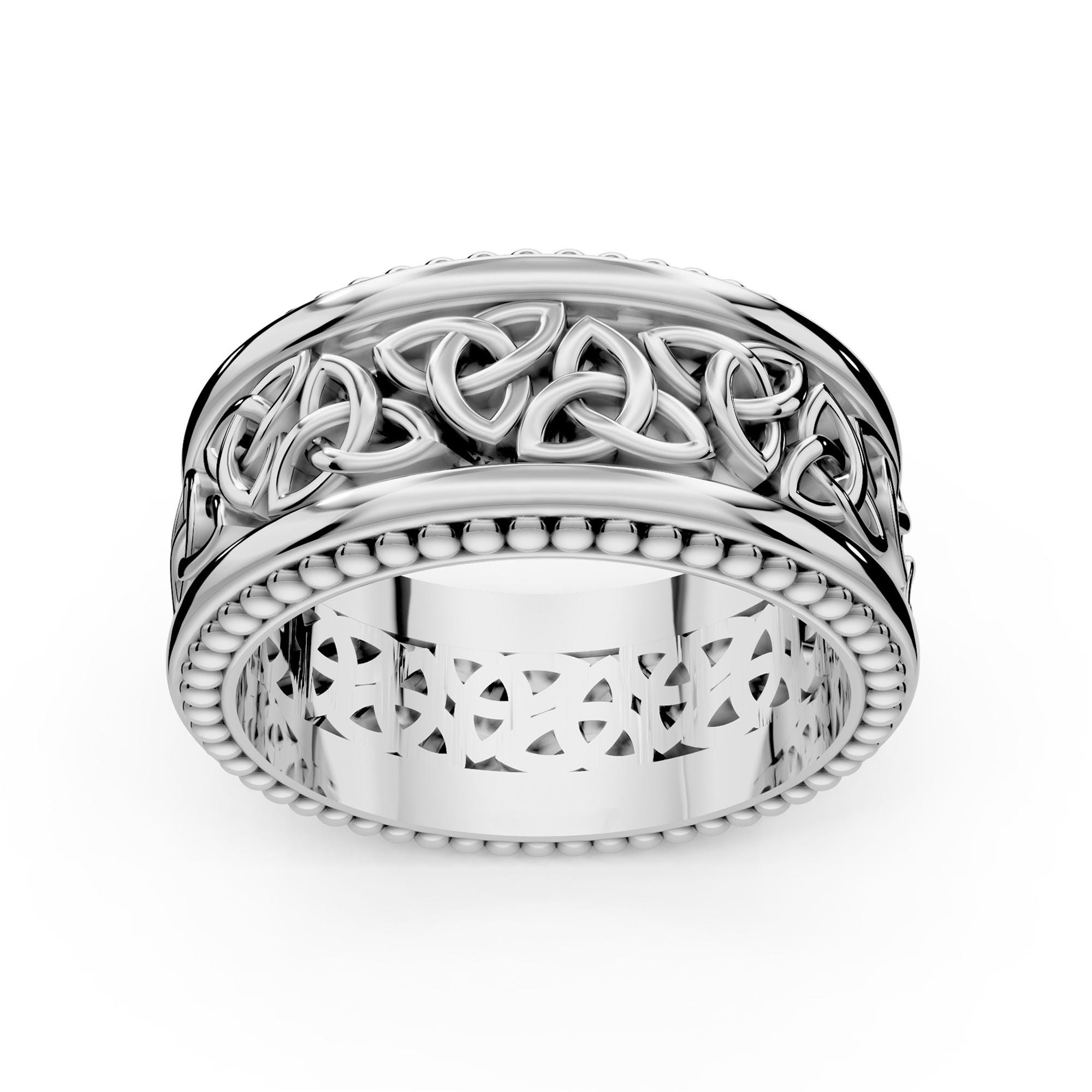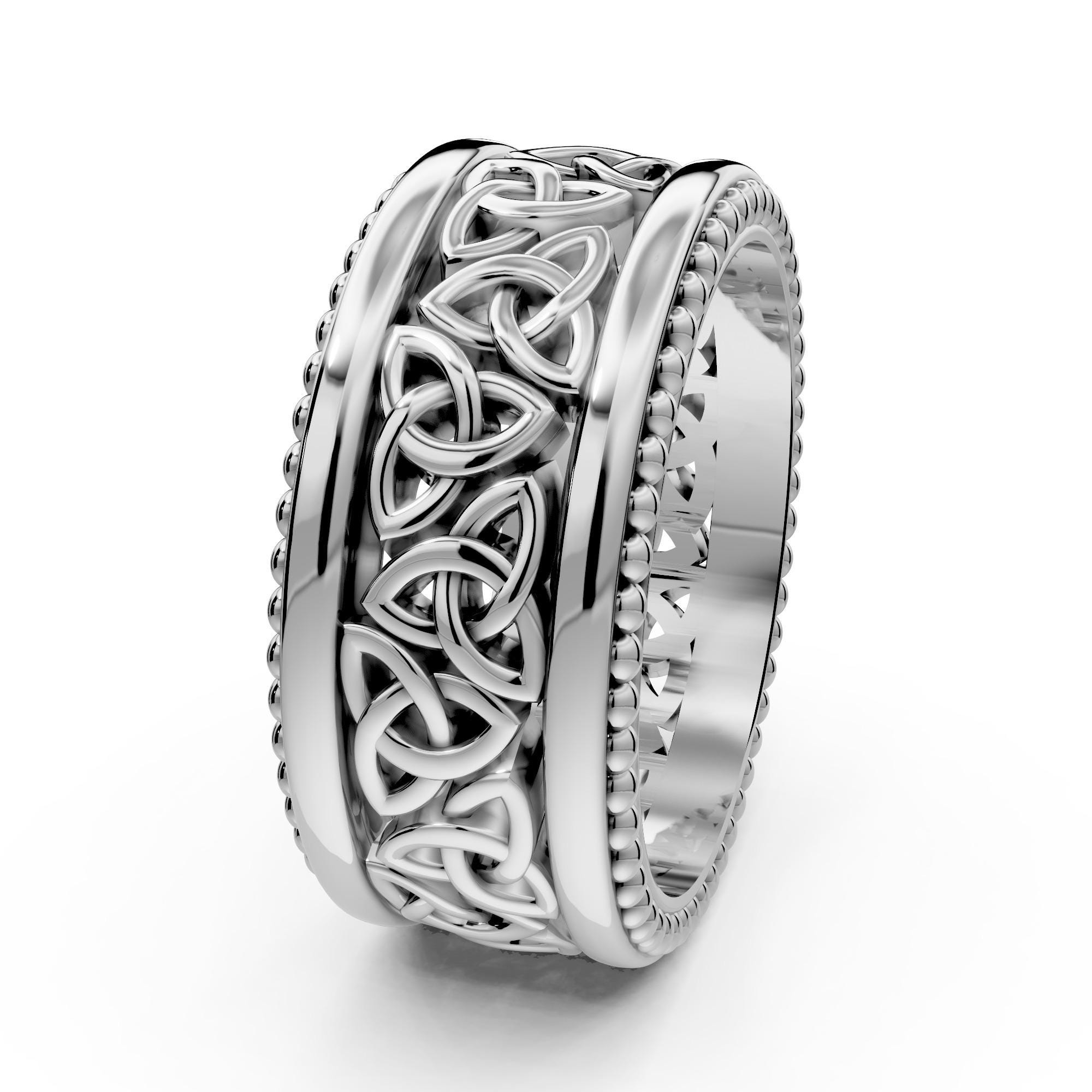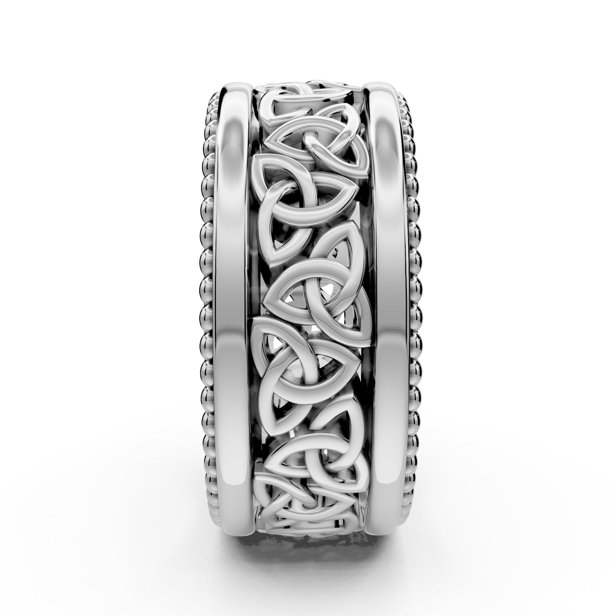 Celebrate timeless tradition with this handcrafted Celtic wedding band, made from solid 14k white gold. Featuring the iconic Trinity Knot, or Triquetra, this Irish-inspired ring symbolizes eternal love, unity, and strength. The intricate knotwork wraps around the band in a continuous design, honoring ancient heritage with a meaningful, modern touch. Perfect for weddings, anniversaries, or as a symbolic everyday ring, this piece is a beautiful reminder of unbreakable bonds and enduring connection.