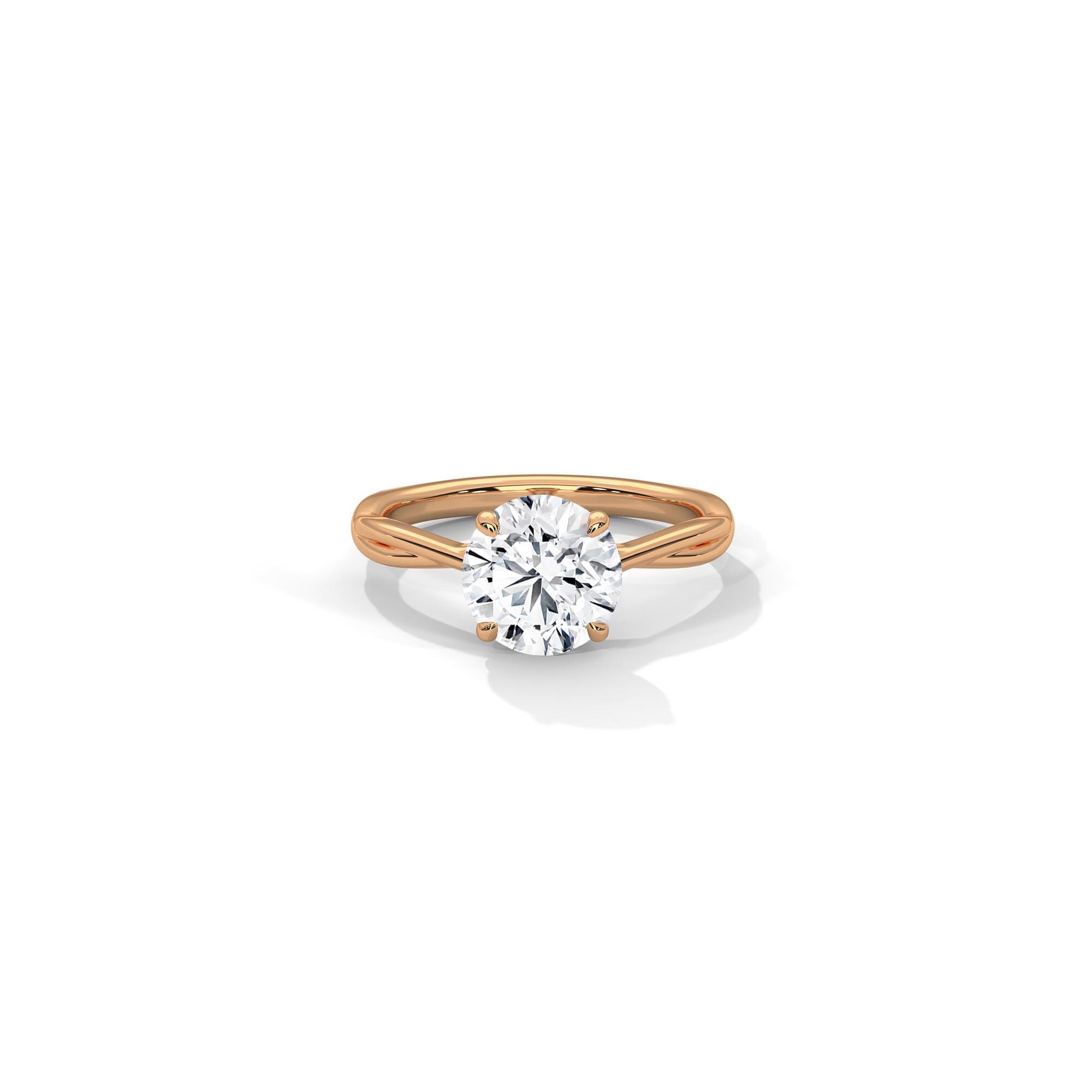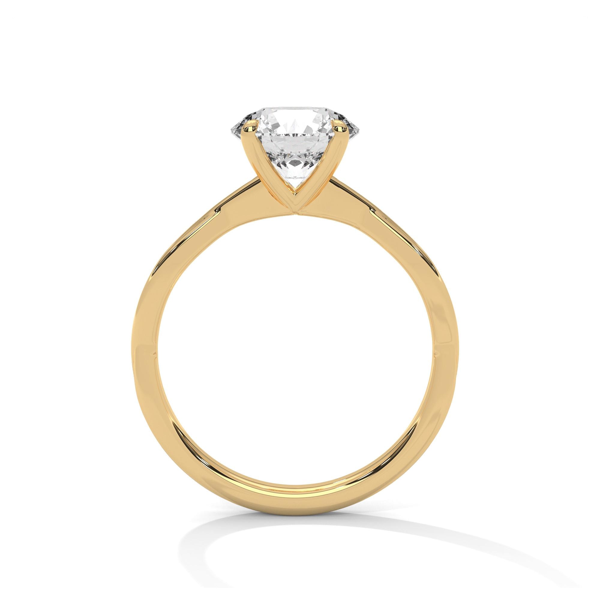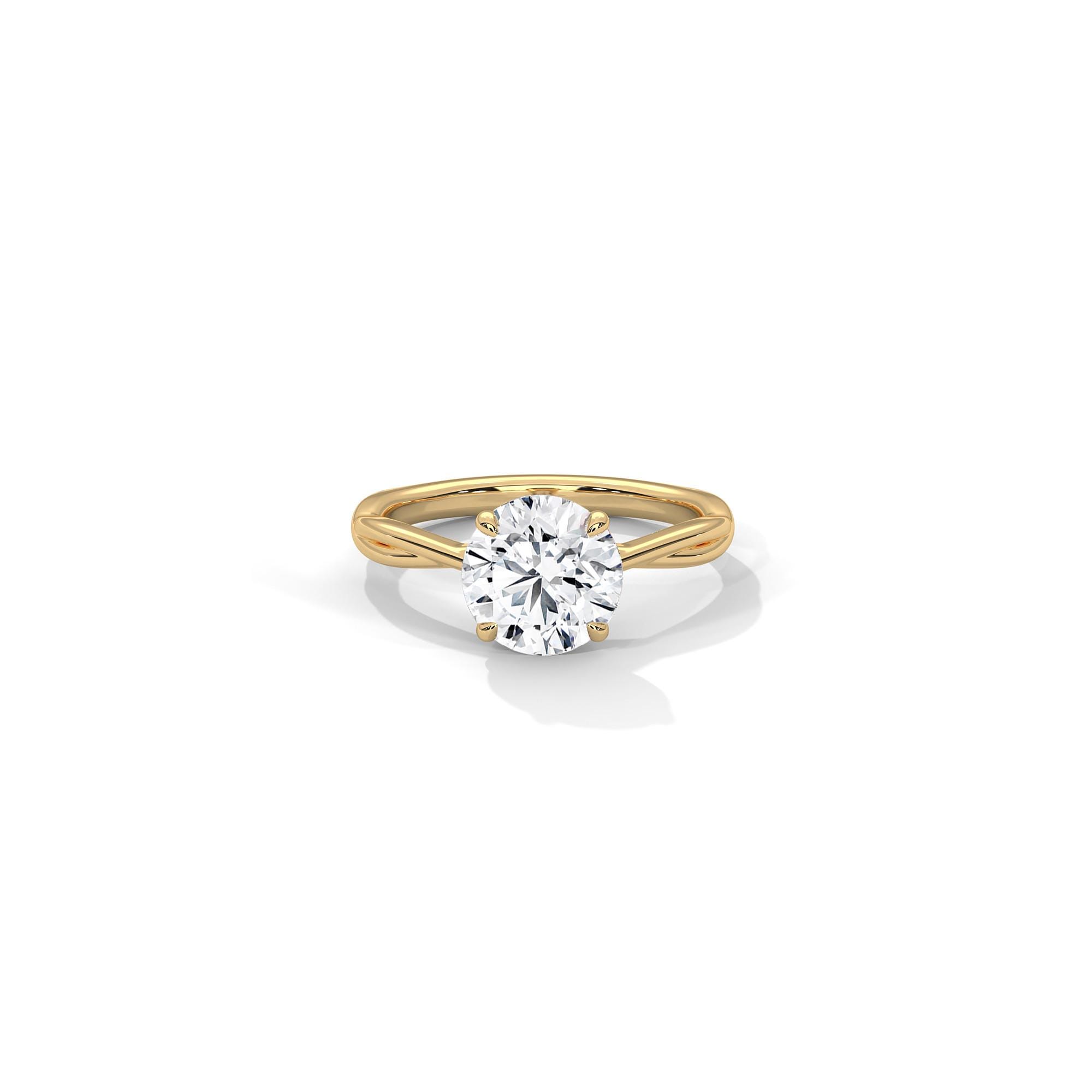 A stunning balance of elegance and craftsmanship, this 2 carat round lab grown diamond engagement ring features a brilliant D–VS1 IGI certified diamond held securely by claw prongs. The twisted braided shank in 14k yellow gold adds texture and symbolic meaning — representing two lives woven together.
