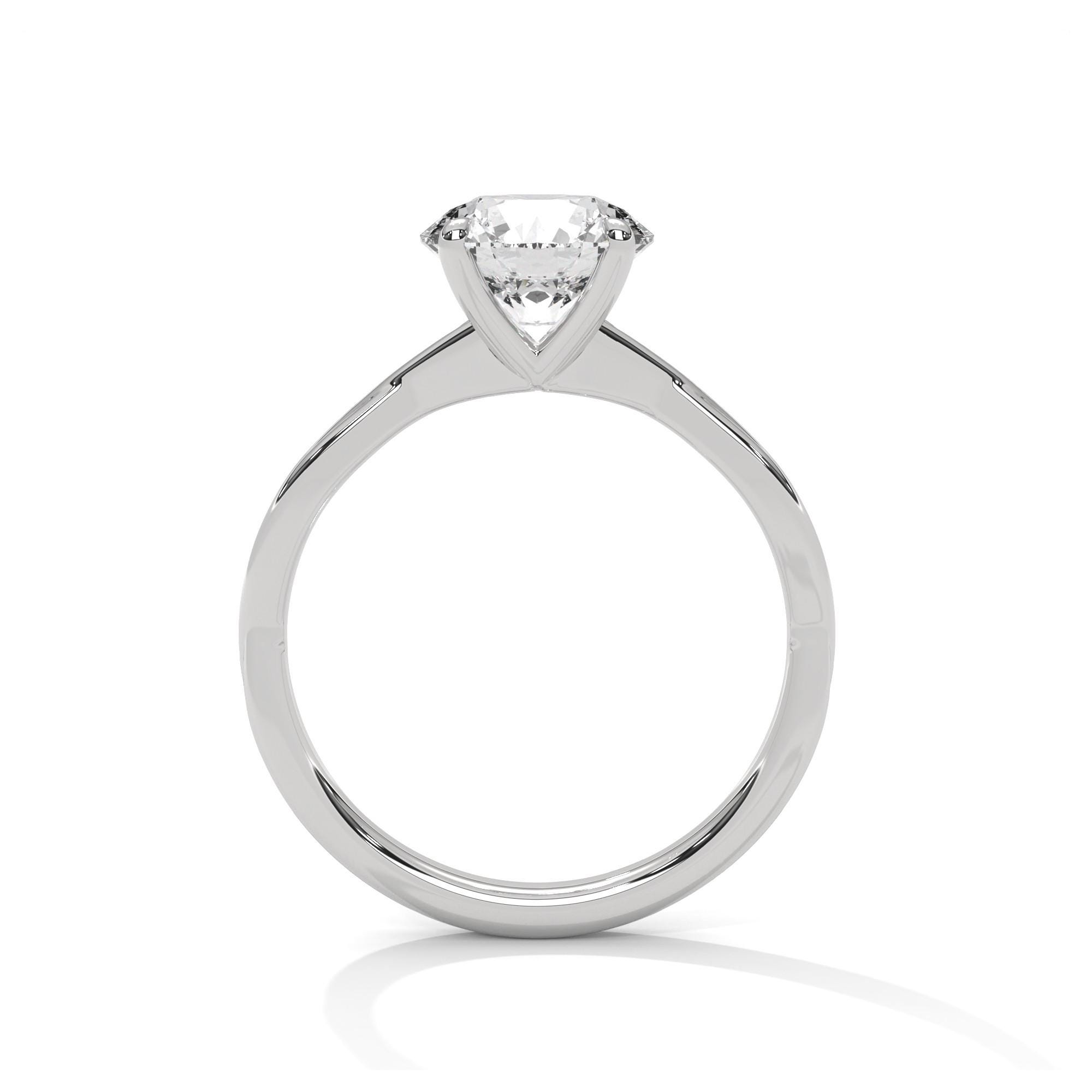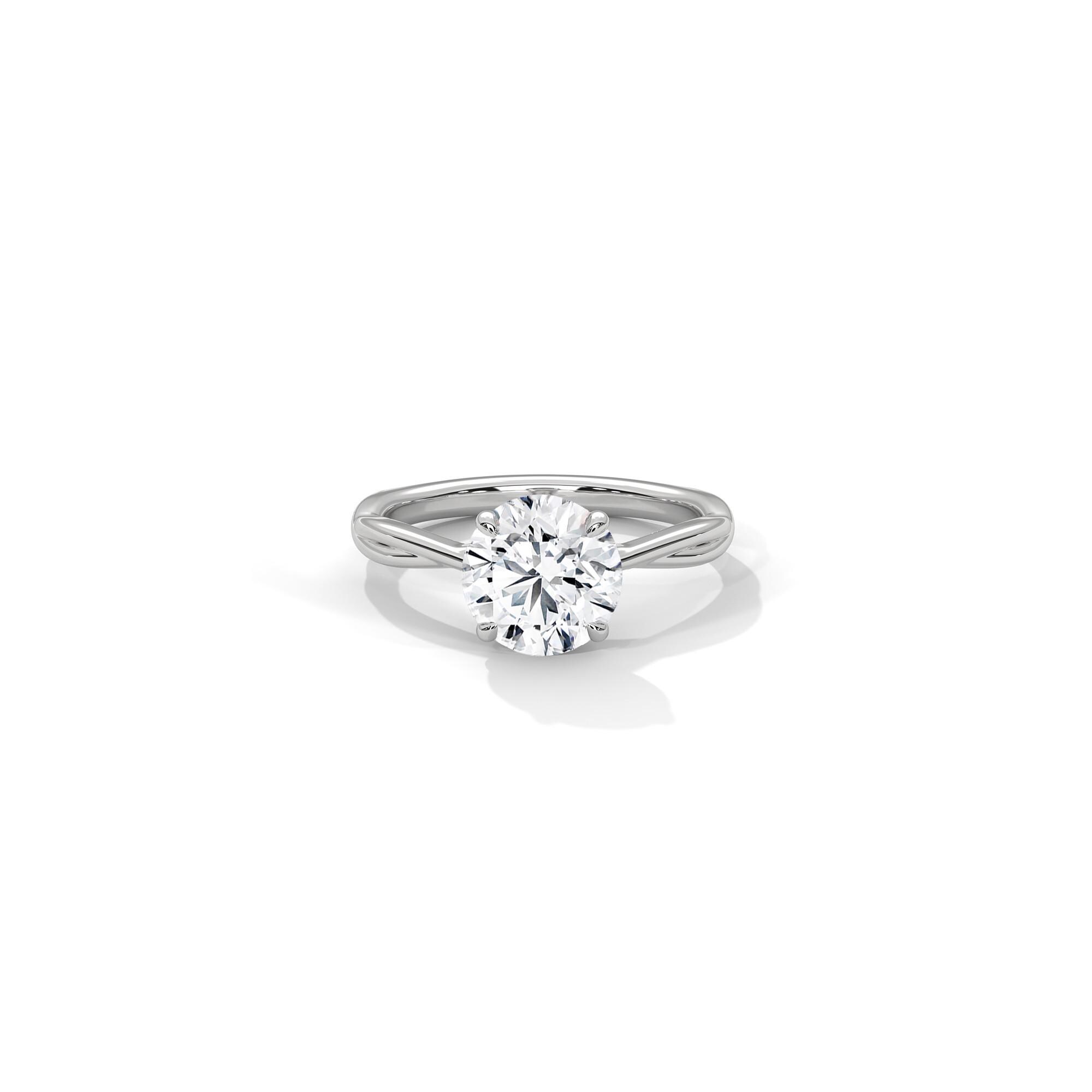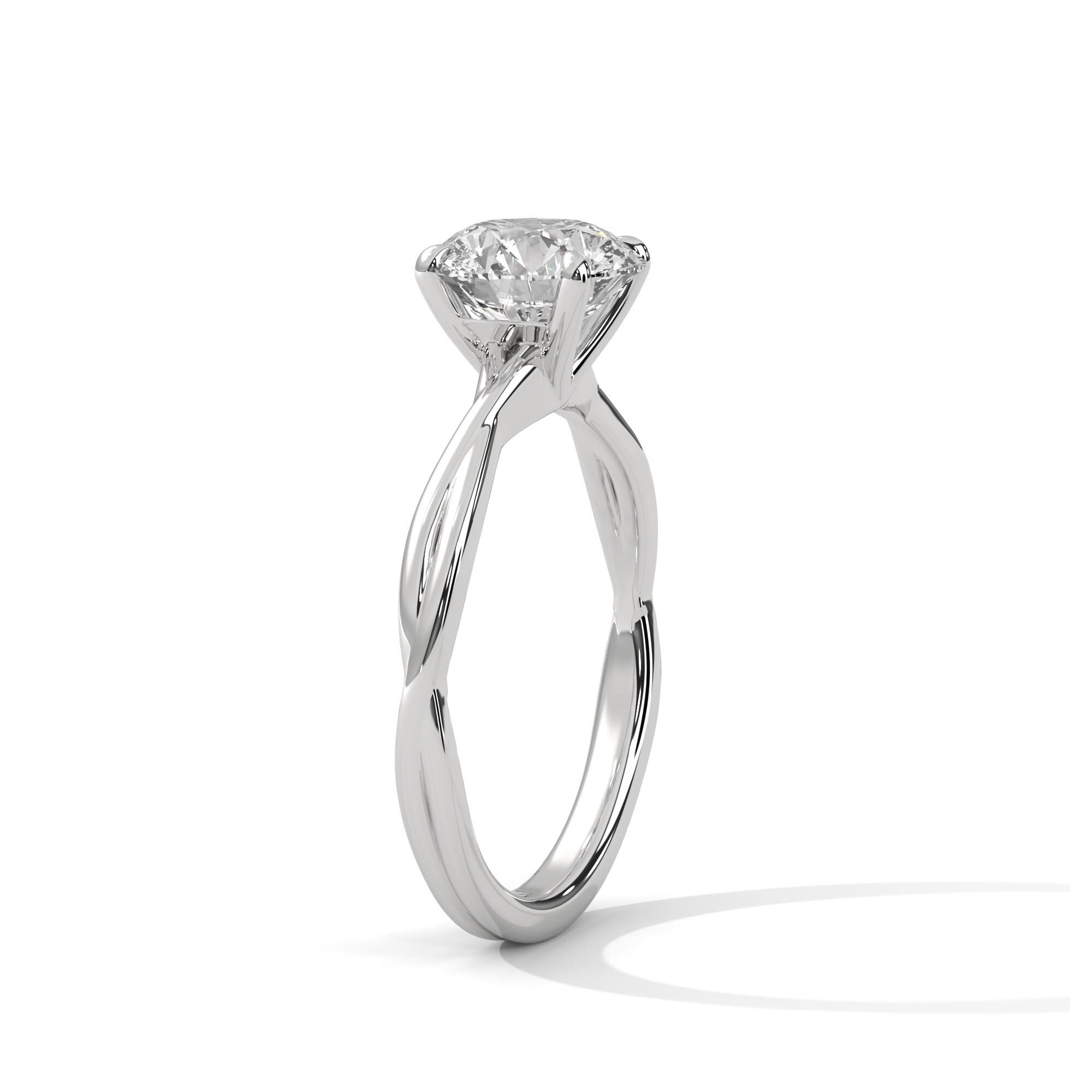A stunning balance of elegance and craftsmanship, this 2 carat round lab grown diamond engagement ring features a brilliant D–VS1 IGI certified diamond held securely by claw prongs. The twisted braided shank in 14k yellow gold adds texture and symbolic meaning — representing two lives woven together.