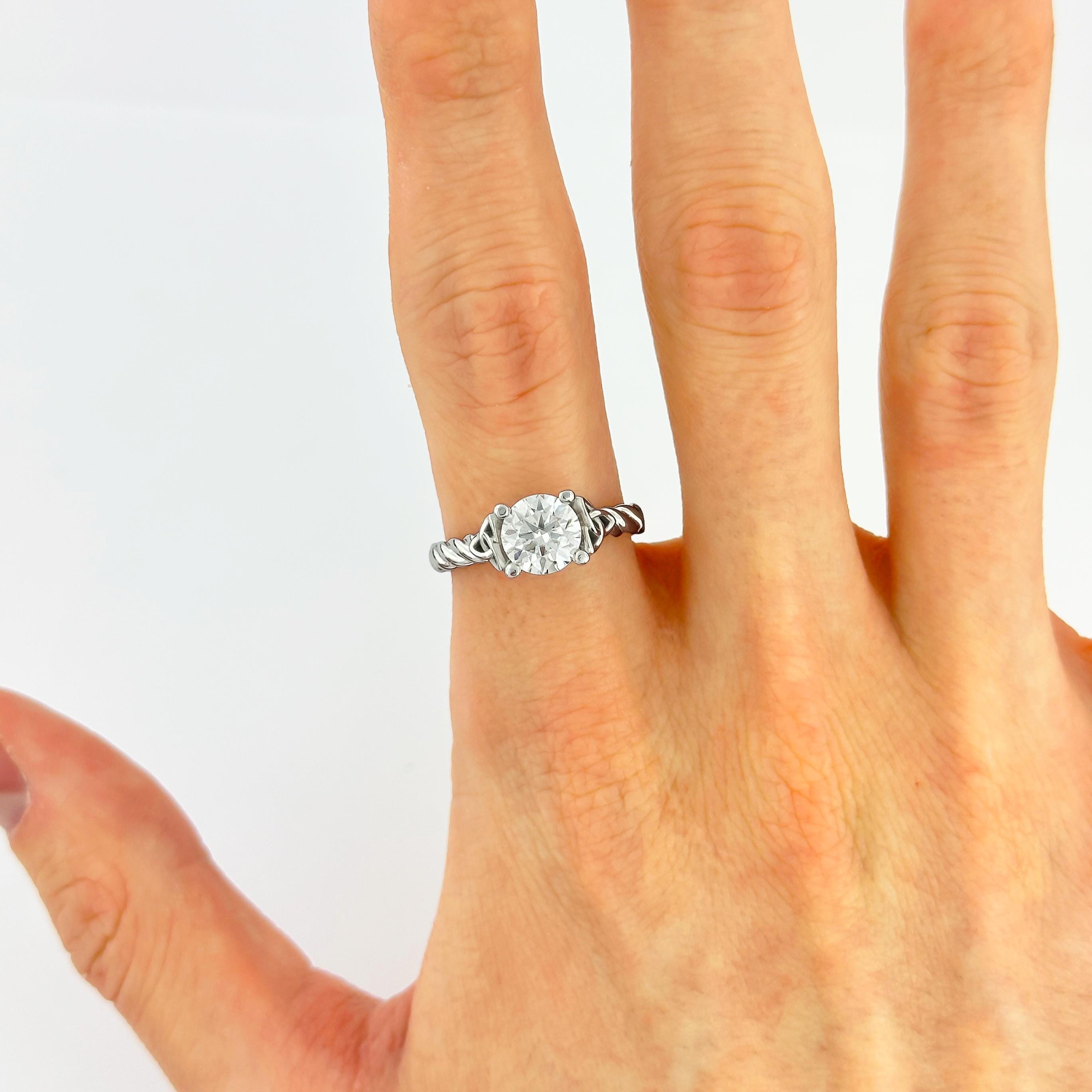 A timeless blend of symbolism and simplicity, this Celtic-inspired engagement ring features a 1 carat round lab grown diamond set in a classic solitaire setting. The twisted rope band, crafted in solid 14k white gold, represents unity, strength, and everlasting connection. Delicate yet meaningful, the braided design evokes Celtic artistry, making it the perfect choice for someone who values love rooted in tradition and beauty!