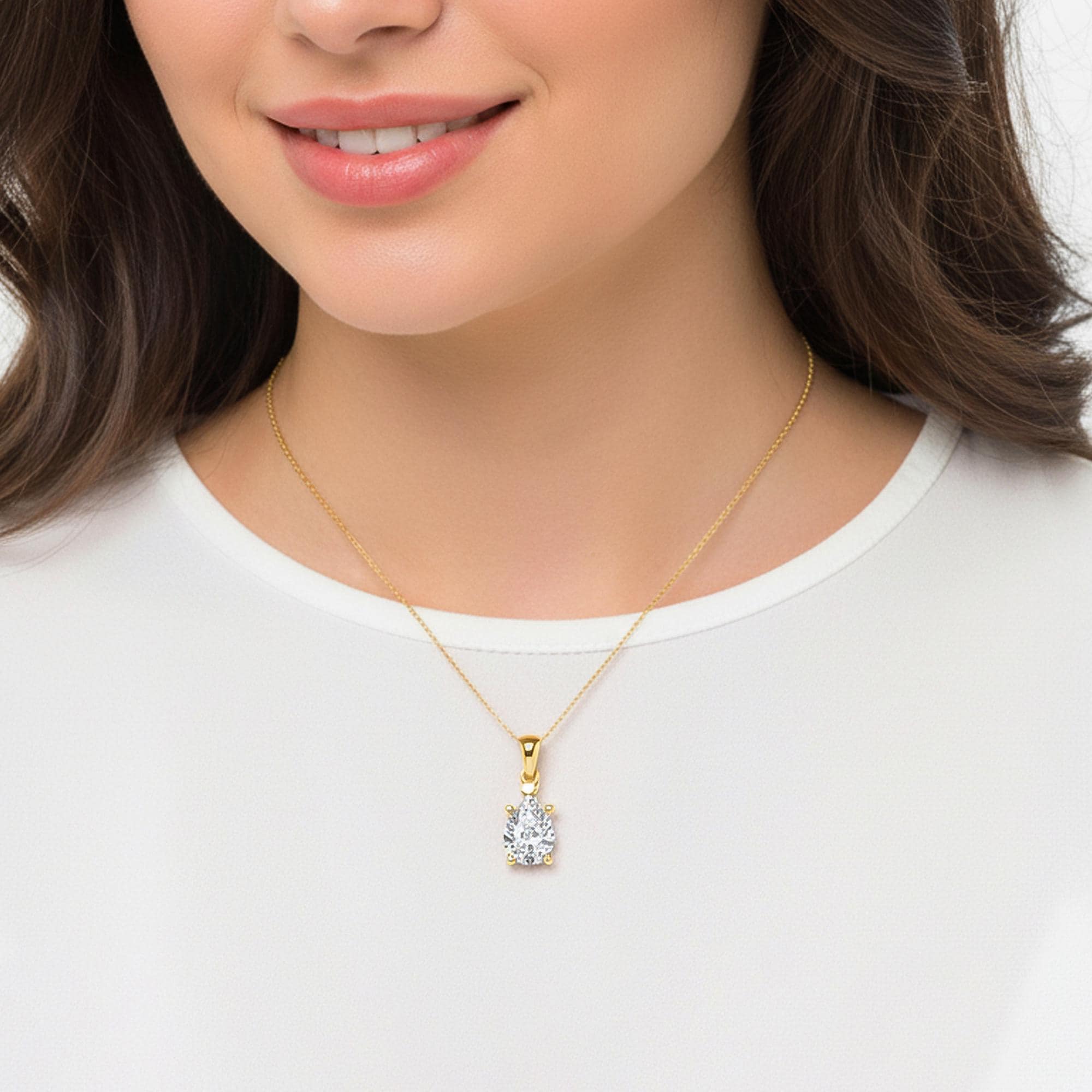 Graceful and full of sparkle, this Lab Grown Diamond Solitaire Pendant features a beautifully cut pear-shaped diamond, set in solid 14k gold for a refined and timeless look. The unique teardrop shape symbolizes love and strength—making it a perfect piece to celebrate someone special!