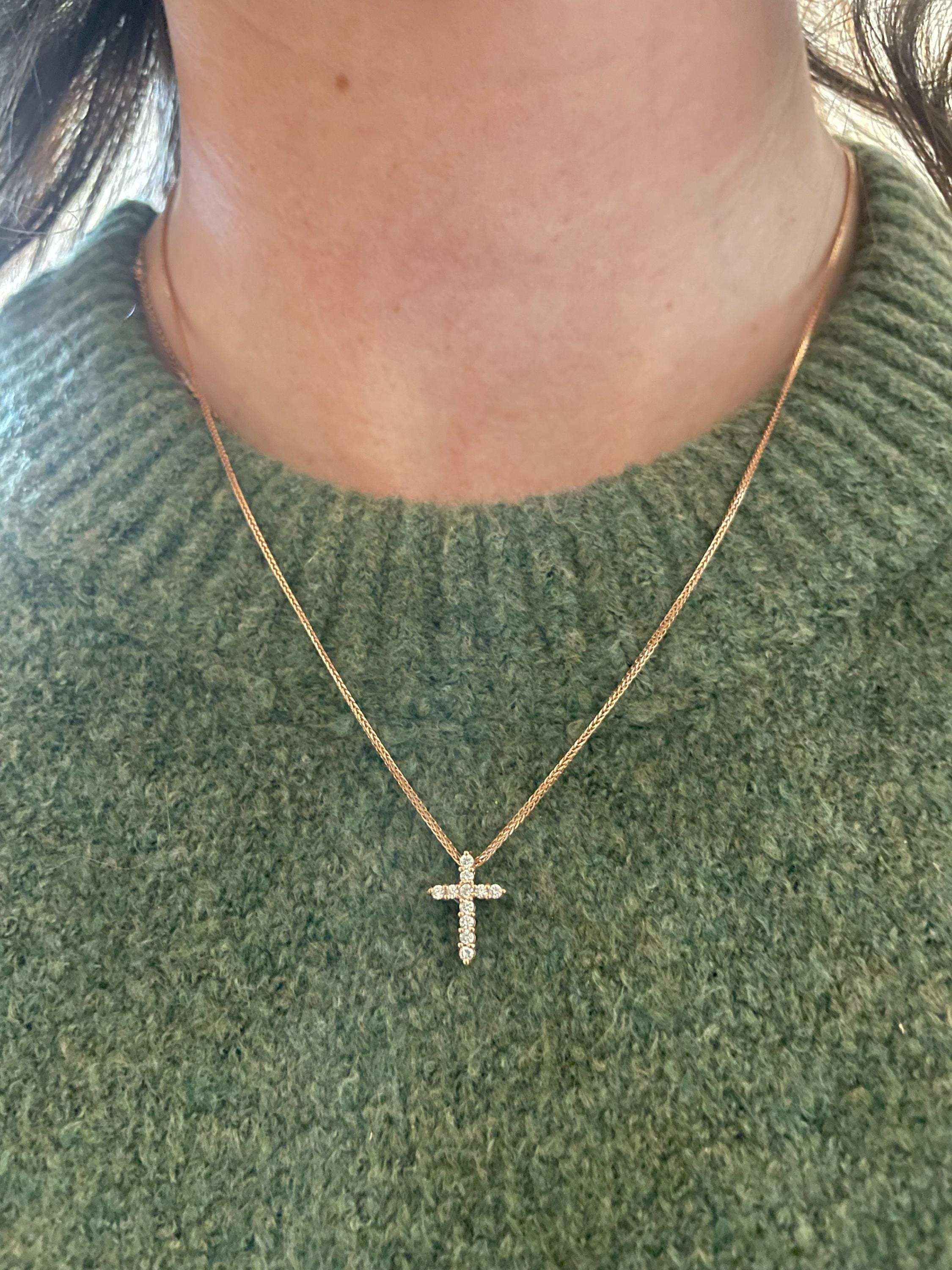 Elegant and meaningful, this Diamond Cross Necklace is crafted from solid 14k gold and adorned with sparkling lab grown diamonds for a radiant touch. The dainty cross charm offers a timeless symbol of faith and style, perfect for layering or wearing on its own. Designed for both everyday elegance and special occasions, this piece makes a heartfelt gift for women—whether for a birthday, anniversary, religious celebration, or simply as a gesture of love and devotion!