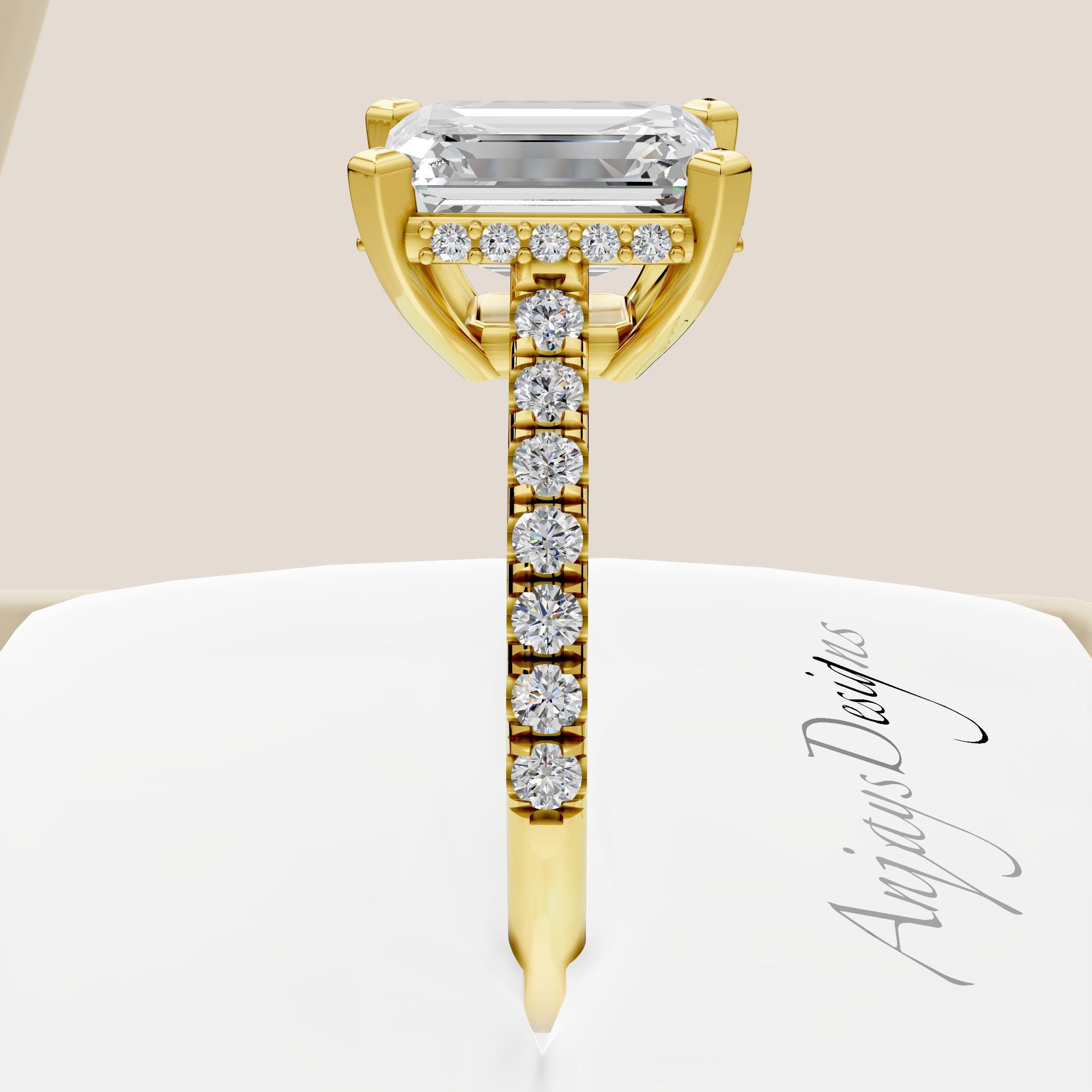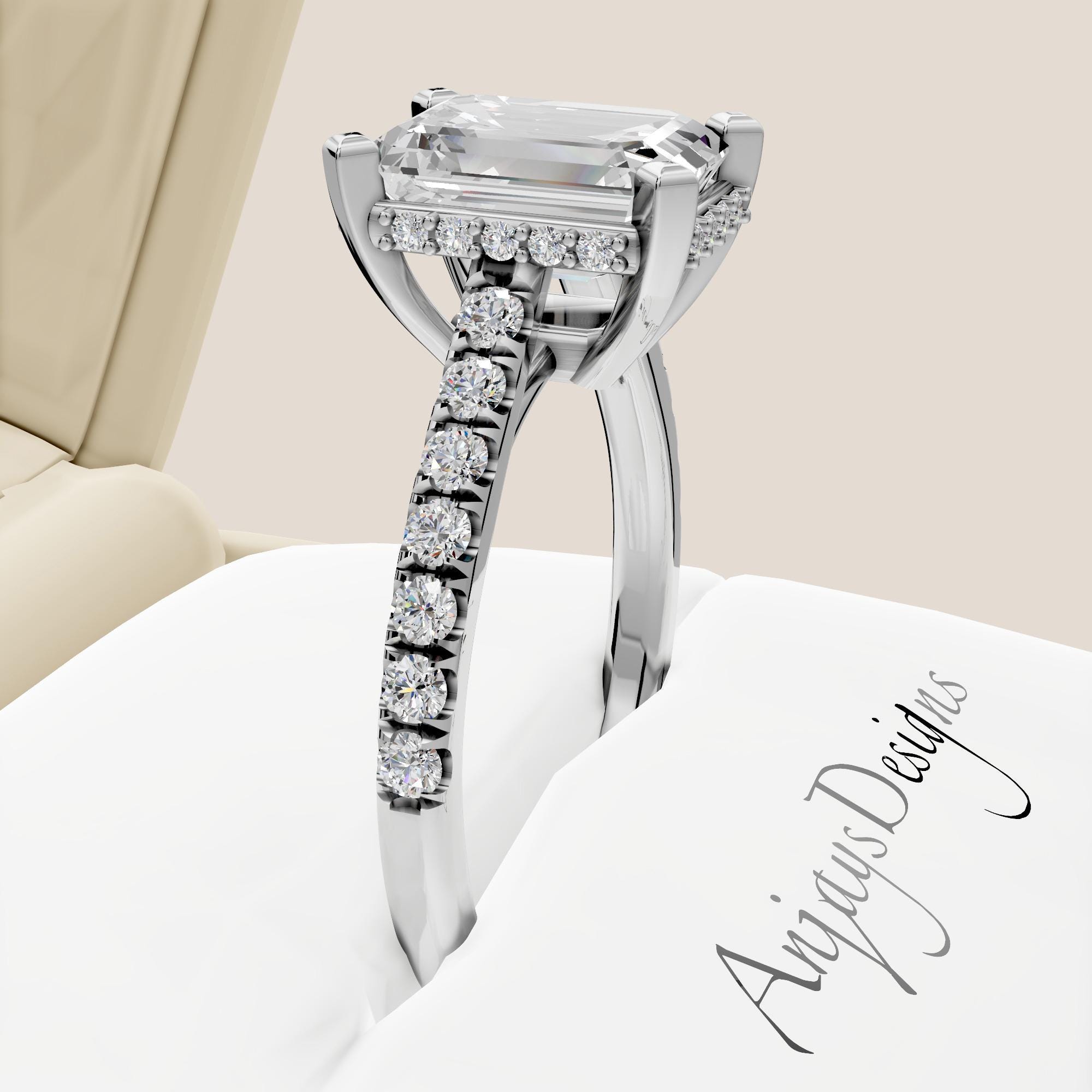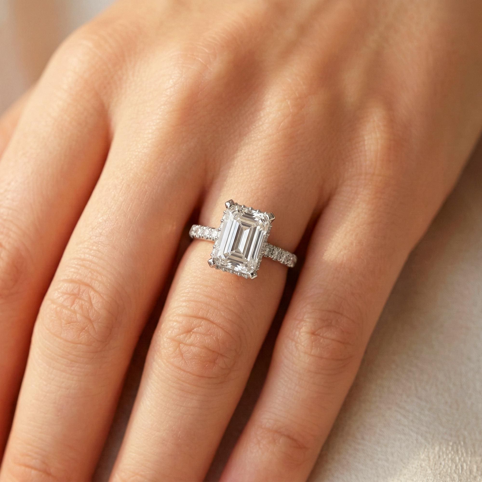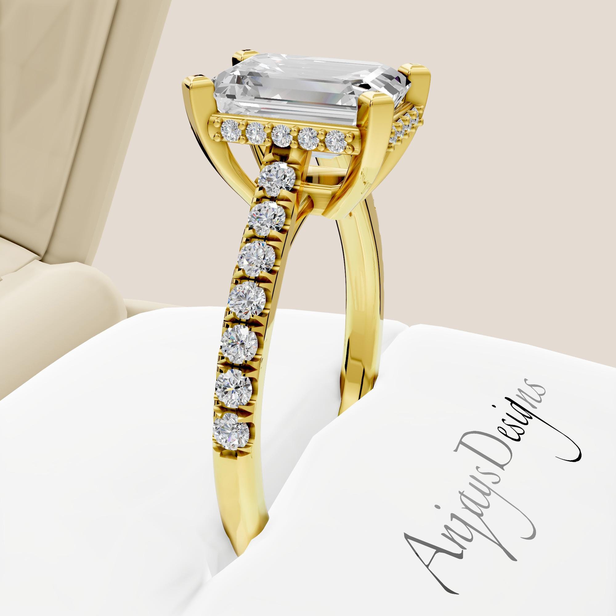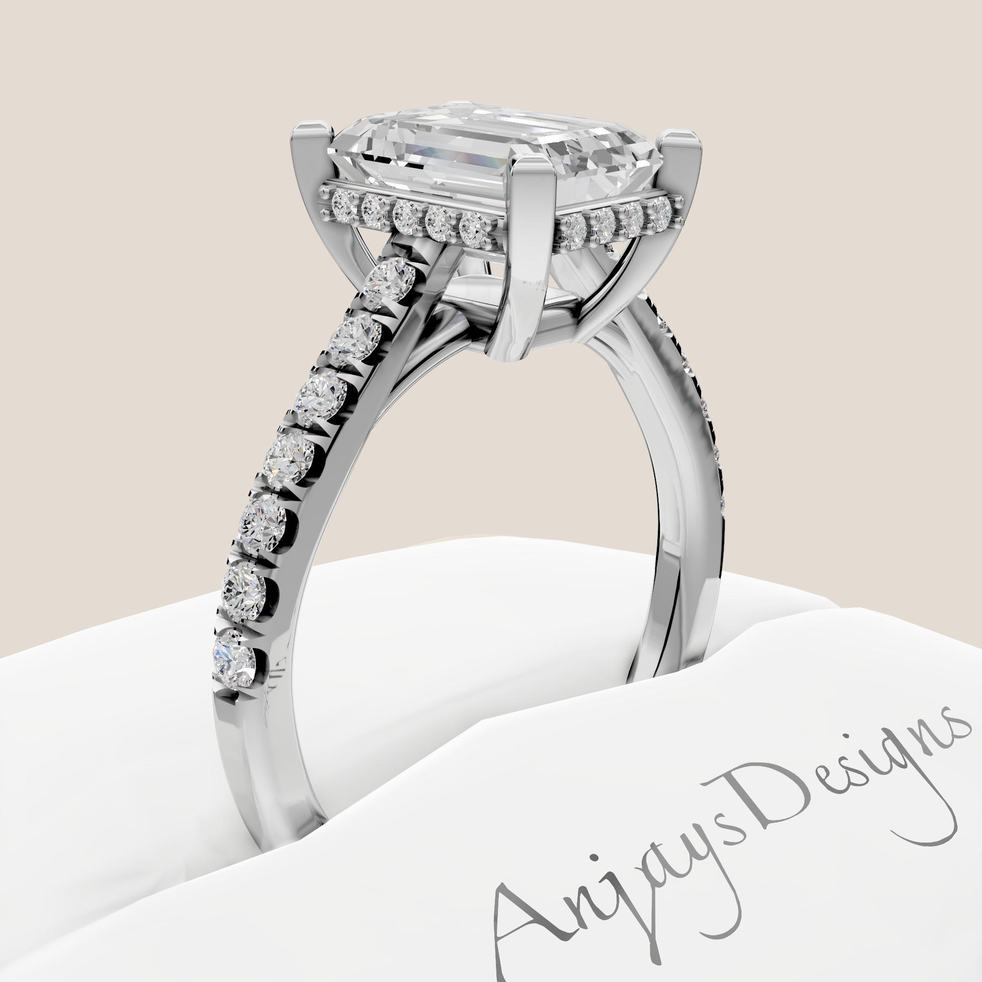 Crafted with precision and care, this ring is IGI Certified, ensuring the highest standards of quality, cut, and beauty. The clean lines of the emerald cut combined with the hidden halo design create a modern yet classic engagement ring that will be cherished for a lifetime!