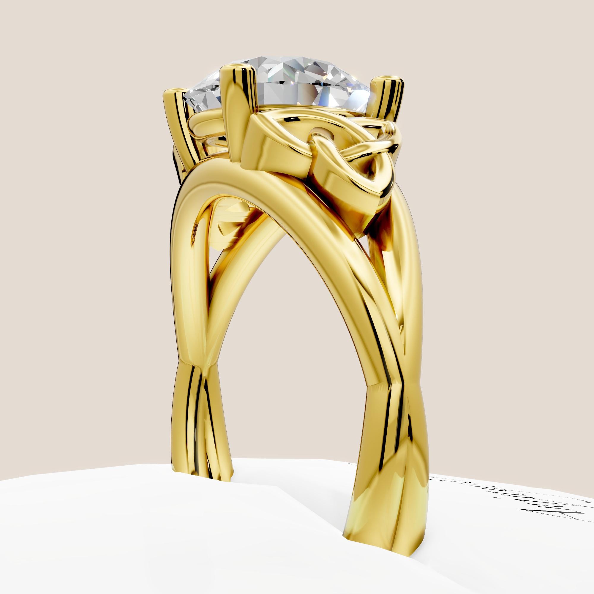 Honor your love story with this Celtic engagement ring, featuring a breathtaking 2 carat round lab grown diamond set in luxurious 14k yellow gold. The center diamond is IGI certified, ensuring its exceptional brilliance, quality, and ethical origin!
