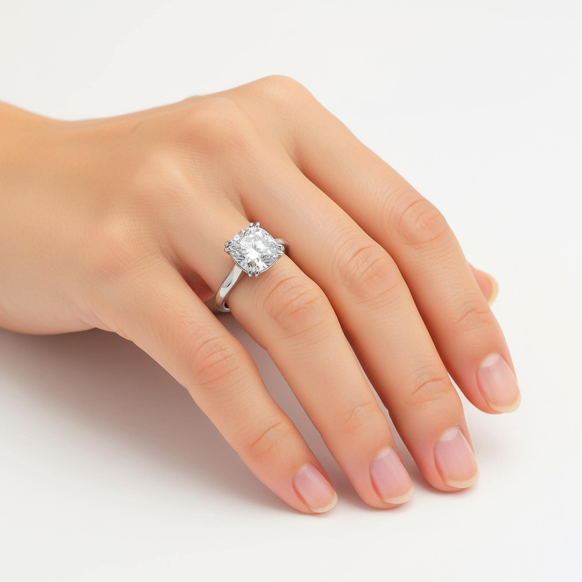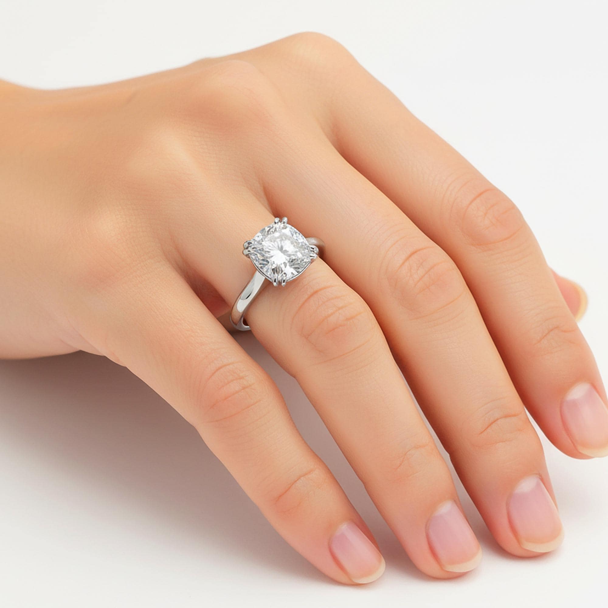 Timeless elegance meets modern craftsmanship in this 2 carat cushion cut lab grown diamond engagement ring. Set in 18k white gold, the dazzling cushion cut diamond is secured with delicate double prongs, adding both strength and refined detail to the design. The thin, minimalist band enhances the brilliance of the diamond, creating a graceful silhouette that highlights the stone’s fire and sparkle!