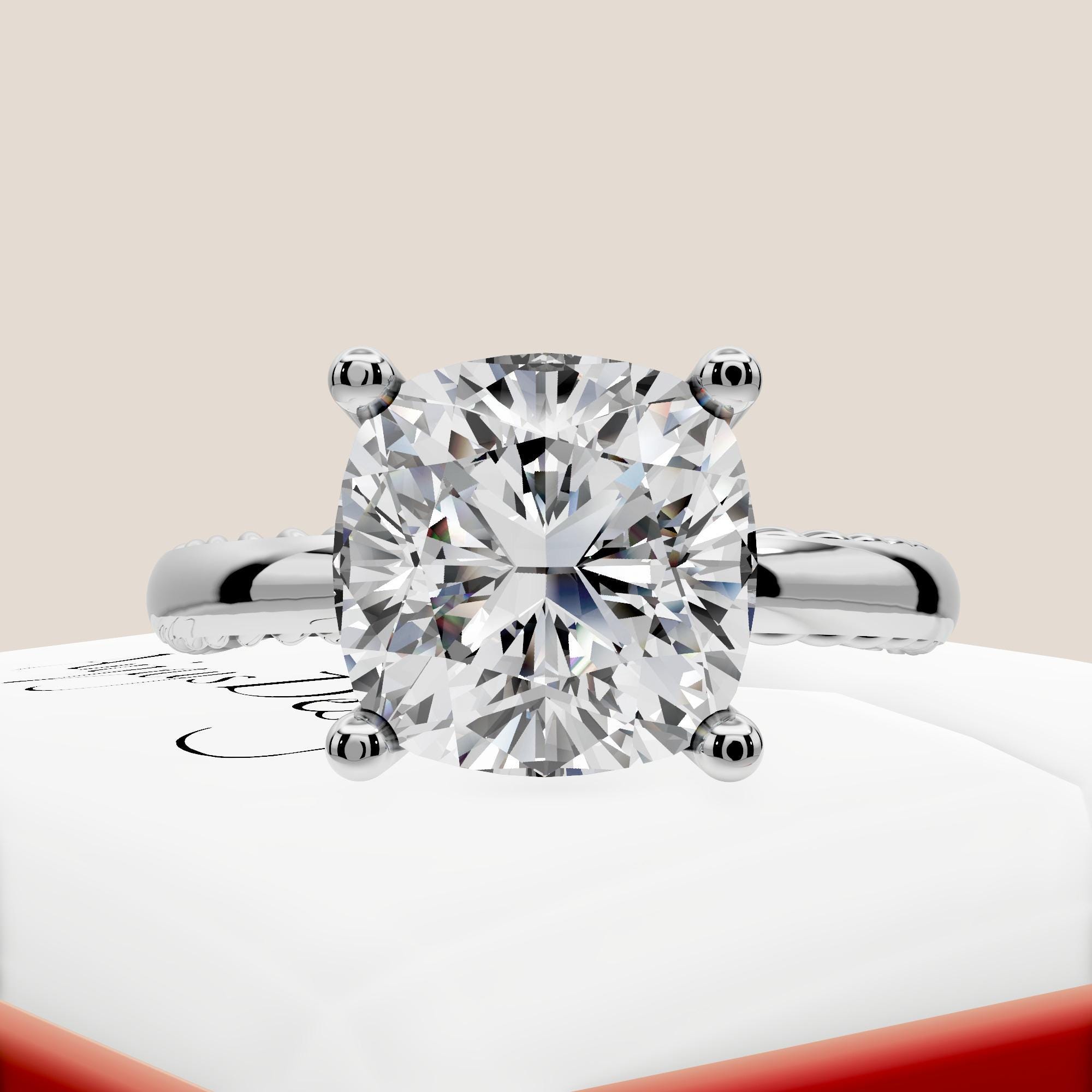 This 3 carat cushion cut lab grown diamond engagement ring is crafted in 14k white gold and comes IGI certified for quality and authenticity! The timeless solitaire setting highlights the brilliance and fire of the cushion cut diamond, creating a stunning centerpiece. A dainty yet elegant engagement ring, this design is perfect for those who love a refined and sophisticated look with maximum sparkle!