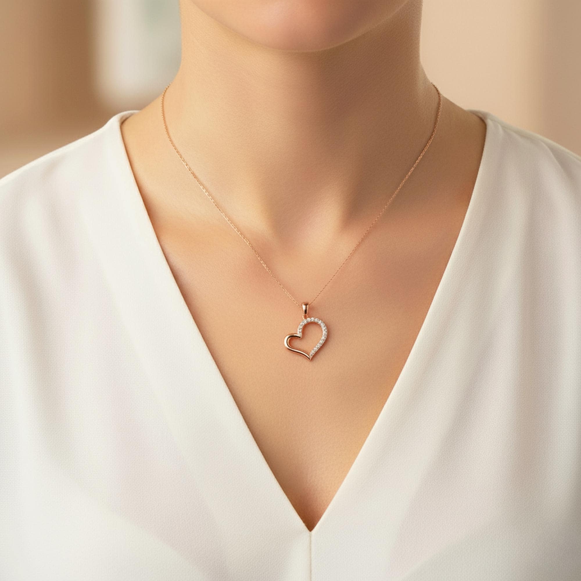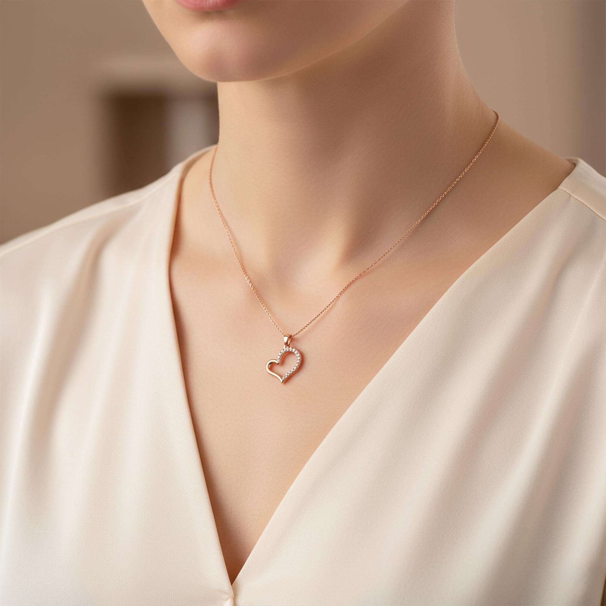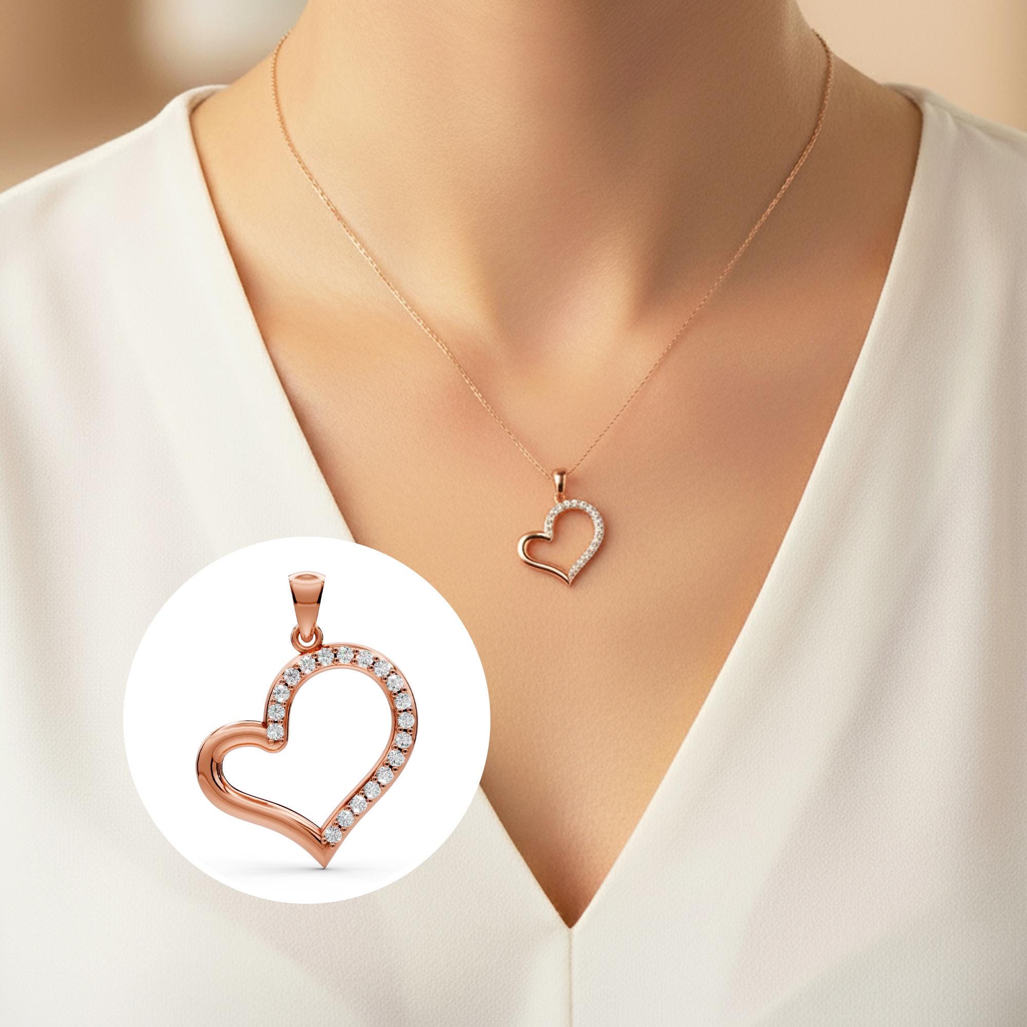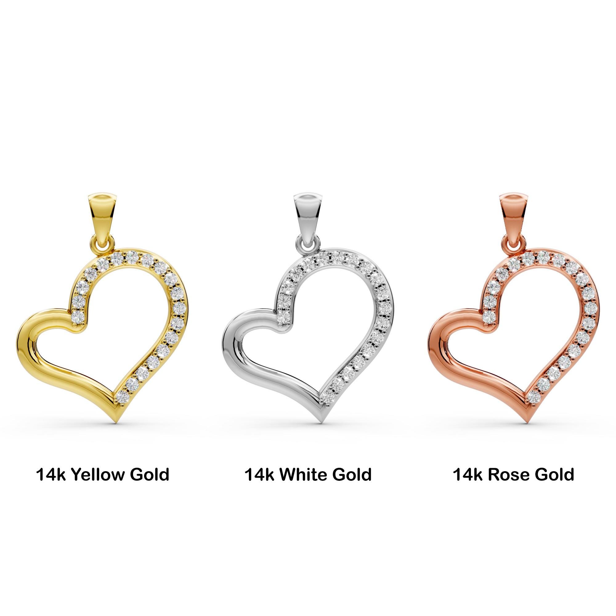 This diamond heart necklace pendant is crafted in 14k solid gold and adorned with brilliant round cut lab grown diamonds, symbolizing love and timeless elegance! The dainty heart charm design offers a delicate and sophisticated look, perfect for everyday wear or as a thoughtful gift for someone special. A beautiful expression of affection, this piece adds a touch of sparkle and sentiment to any jewelry collection!
