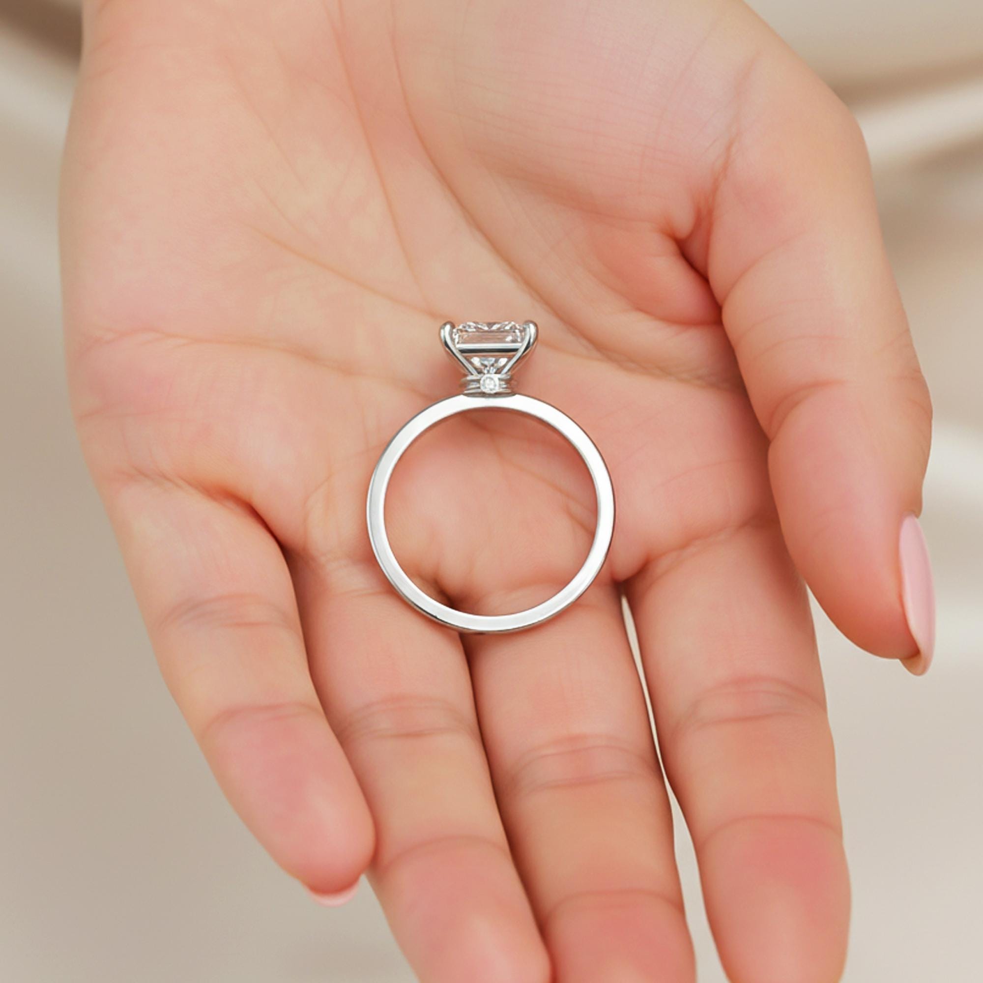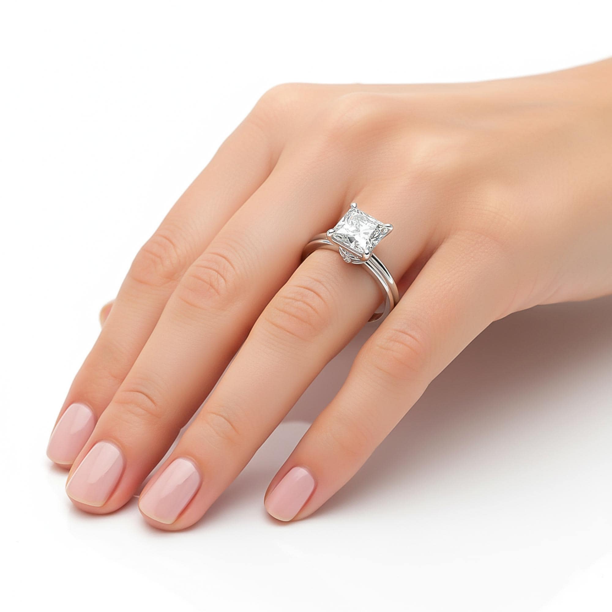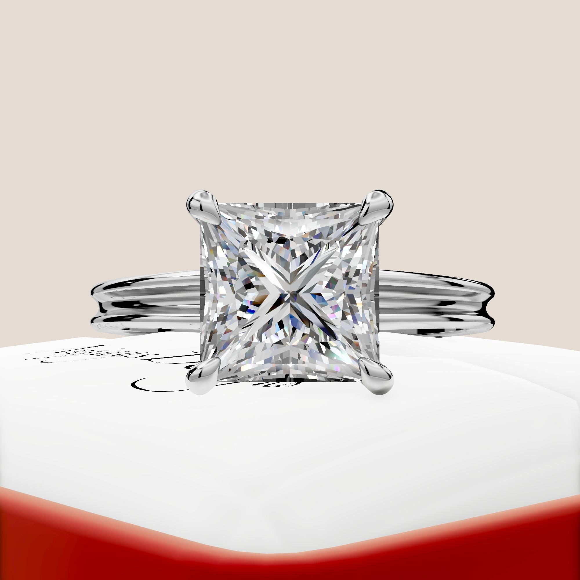 This 2 carat princess cut diamond engagement ring is crafted in 14k white gold and features a stunning lab grown diamond that’s IGI certified for its superior quality and brilliance! The unique peekaboo setting adds a hidden sparkle beneath the center stone, offering a modern twist to a timeless design. A perfect choice for those who appreciate clean lines, symmetry, and understated sophistication!