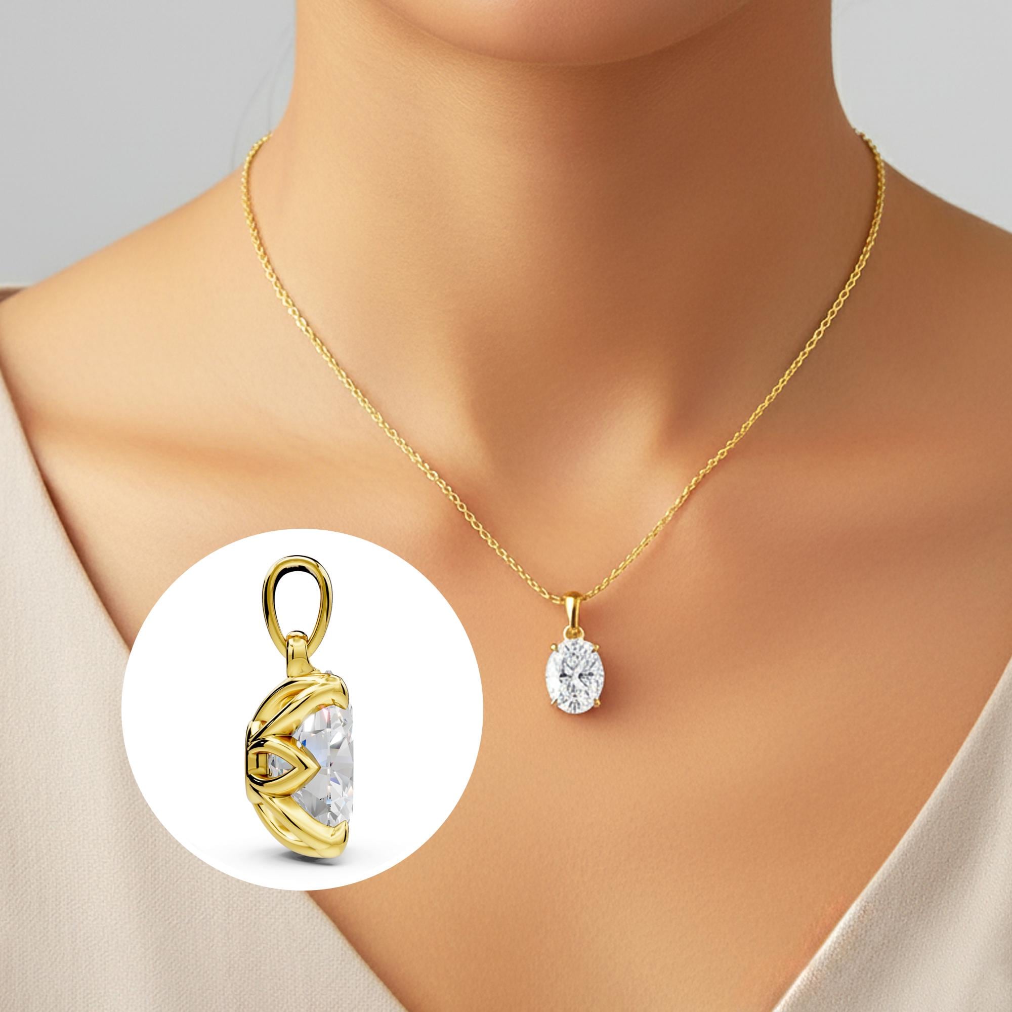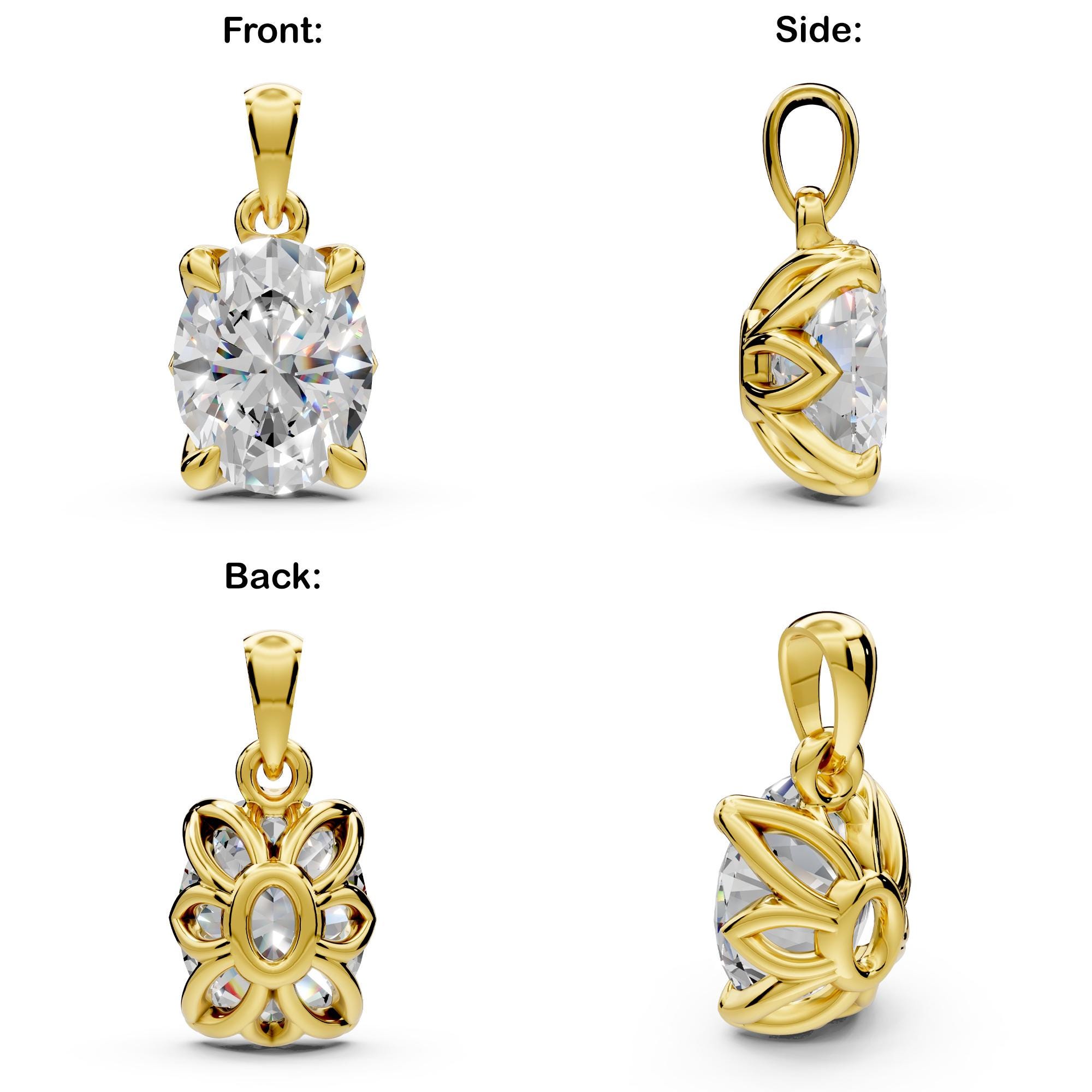 This Oval Diamond Solitaire Pendant is a nature inspired piece, beautifully crafted in solid 14K gold. Featuring a lab grown diamond set in a floral petal prongs, it captures light from every angle for a radiant sparkle. Perfect as a bridal or bridesmaid pendant, this dainty necklace combines elegance and timeless charm, making it a thoughtful gift or a stunning everyday accessory!
