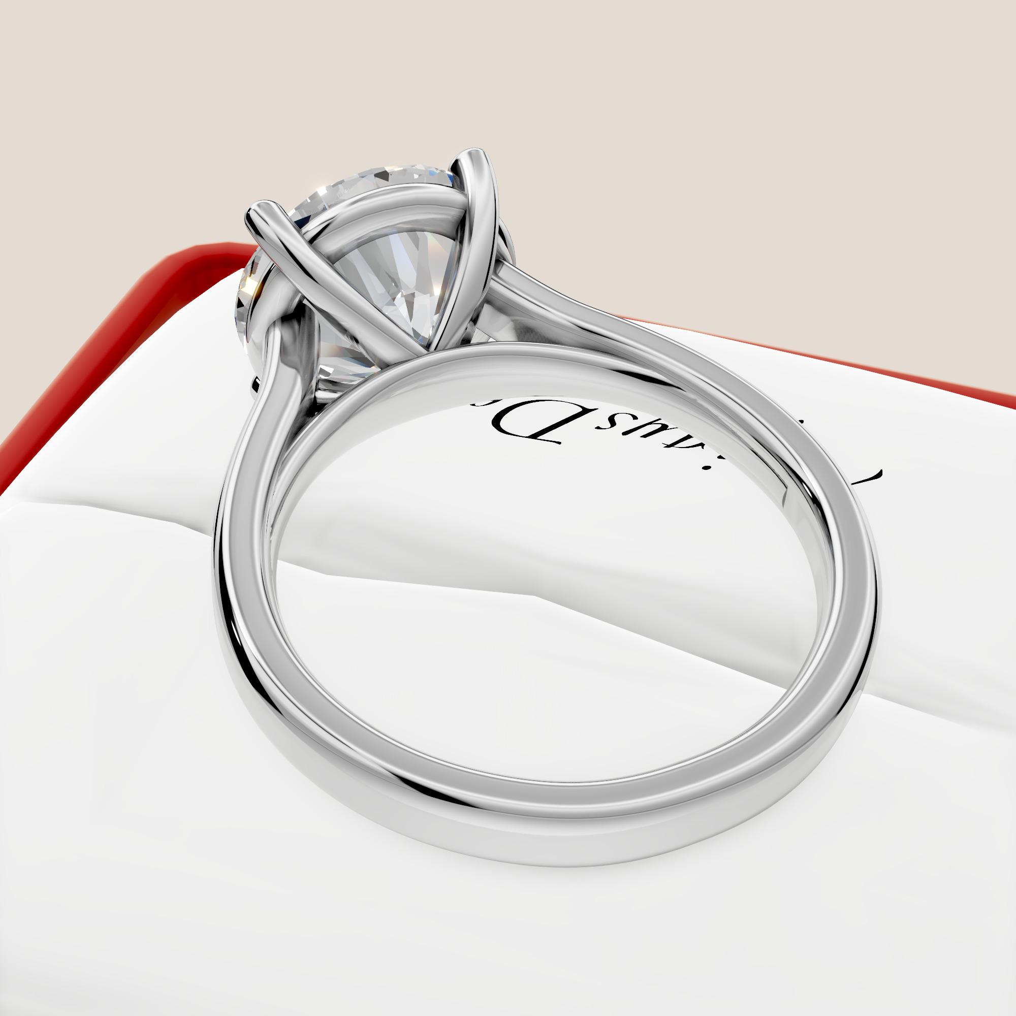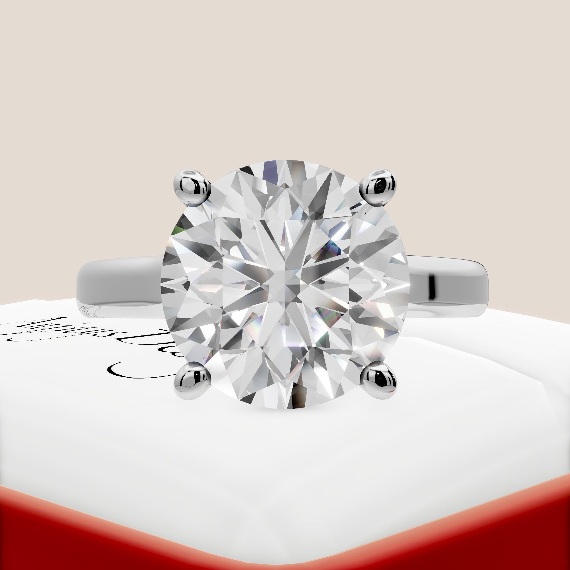 Elevate your special moment with this 4 carat round lab grown diamond engagement ring, set in a sleek platinum solitaire design! Featuring an E color, VVS2 clarity diamond, this ethically sourced ring radiates exceptional brilliance in a minimalist, timeless style. Perfect for engagements or weddings, it combines luxury, sustainability, and refined elegance for a statement of enduring love!
