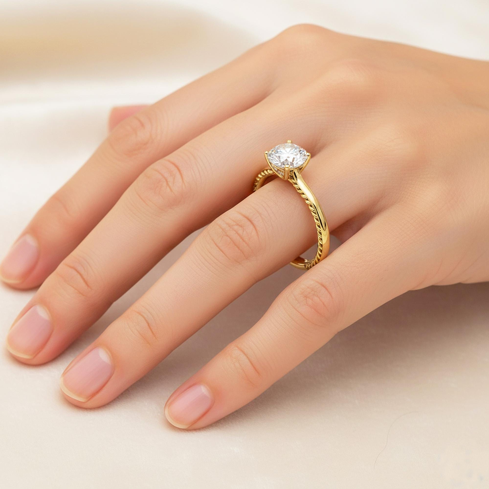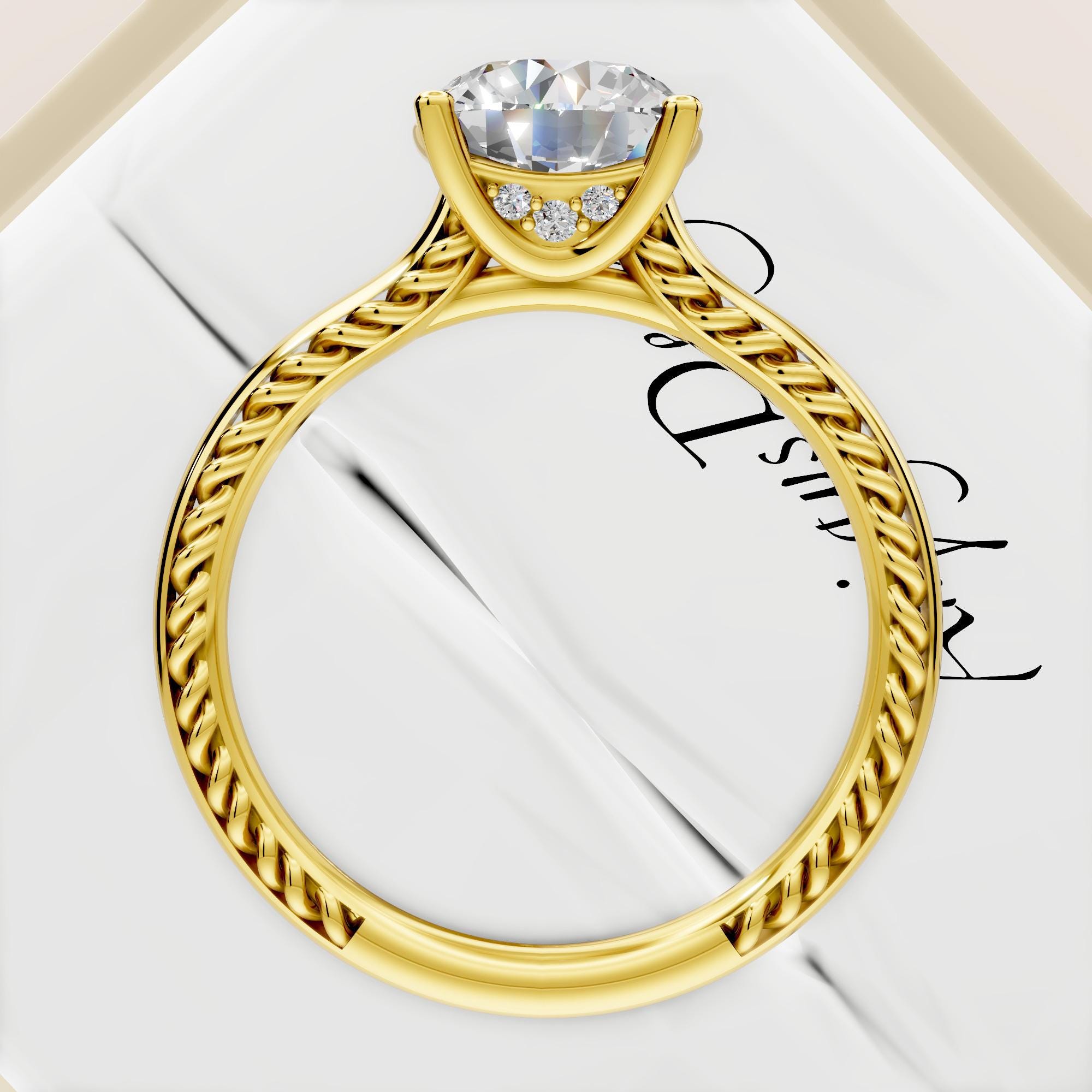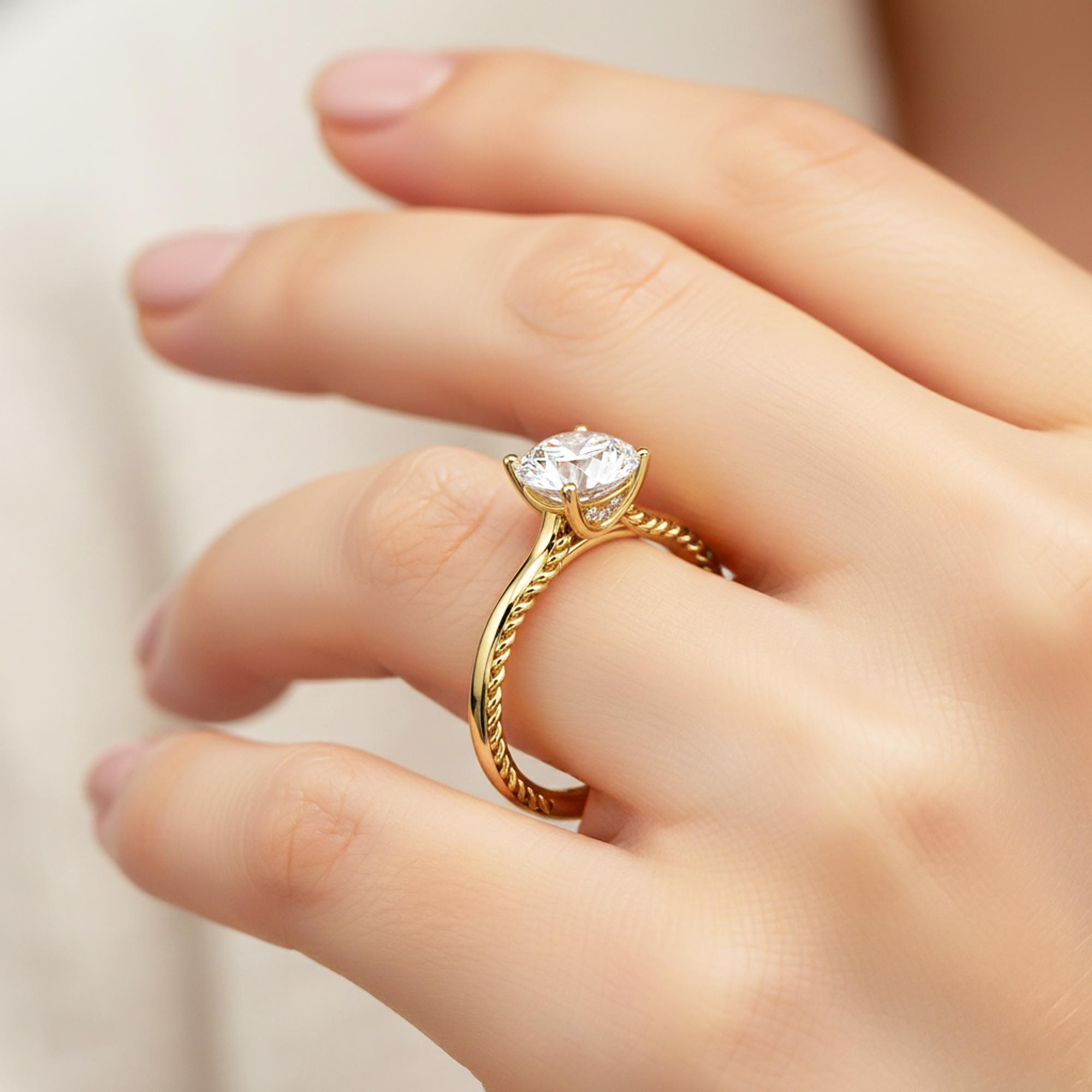 This round cut 2 carat engagement ring showcases a stunning IGI Certified D Color, VS1 Clarity lab grown diamond set in luxurious 14k yellow gold! The hidden halo adds extra brilliance beneath the center stone, offering a modern twist on a classic round brilliant solitaire. A radiant, ethically crafted engagement ring designed for maximum sparkle and timeless elegance!