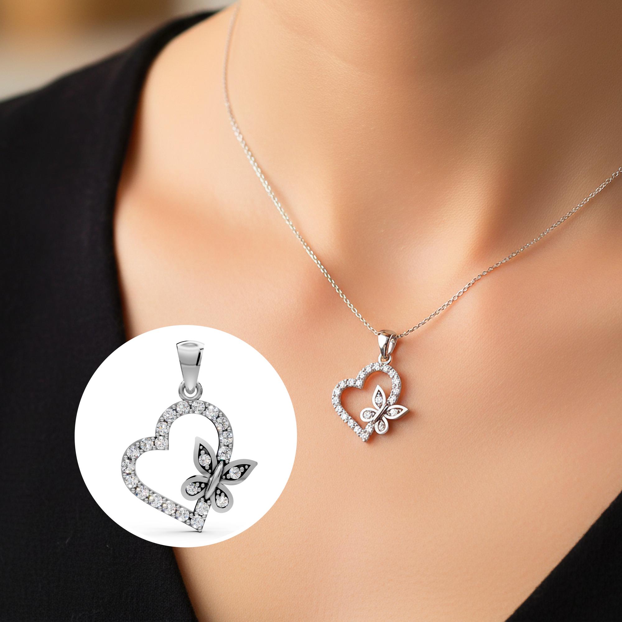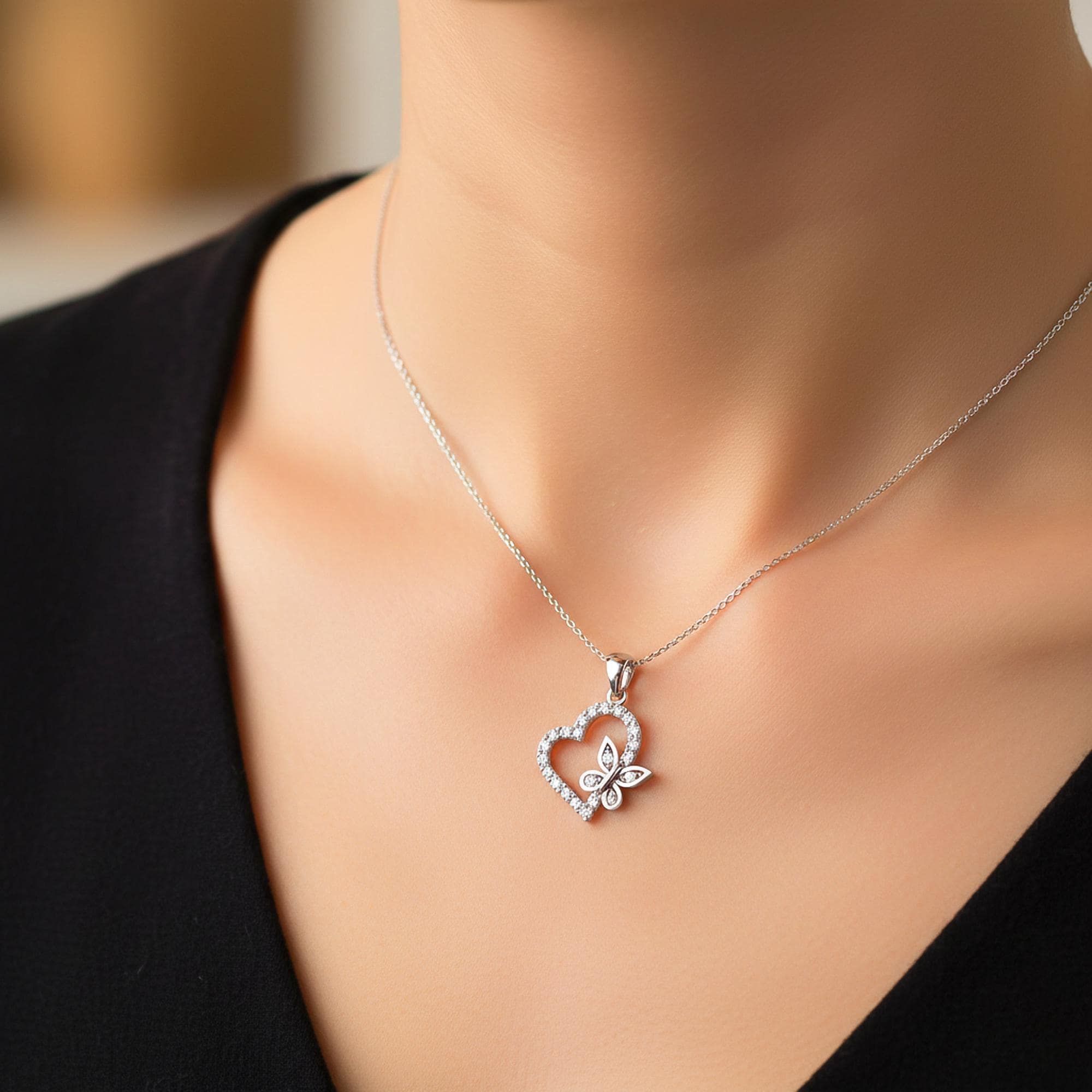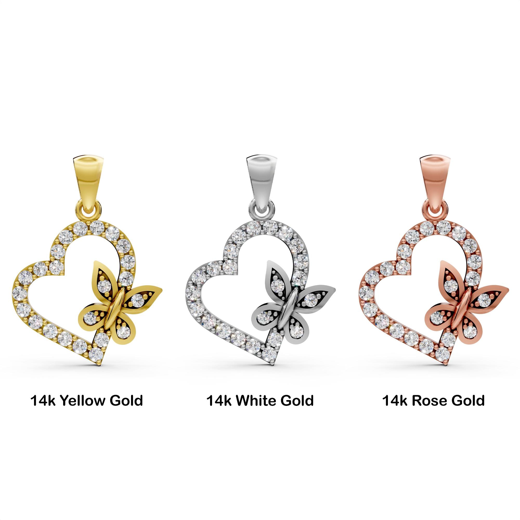 This solid 14k gold diamond heart pendant features a beautiful butterfly design, blending romantic and nature inspired elements into one elegant necklace! Sparkling lab grown diamonds enhance the heart and butterfly motif, creating a dainty, meaningful piece perfect for everyday wear or gifting. A beautiful symbol of love, transformation, and timeless style!