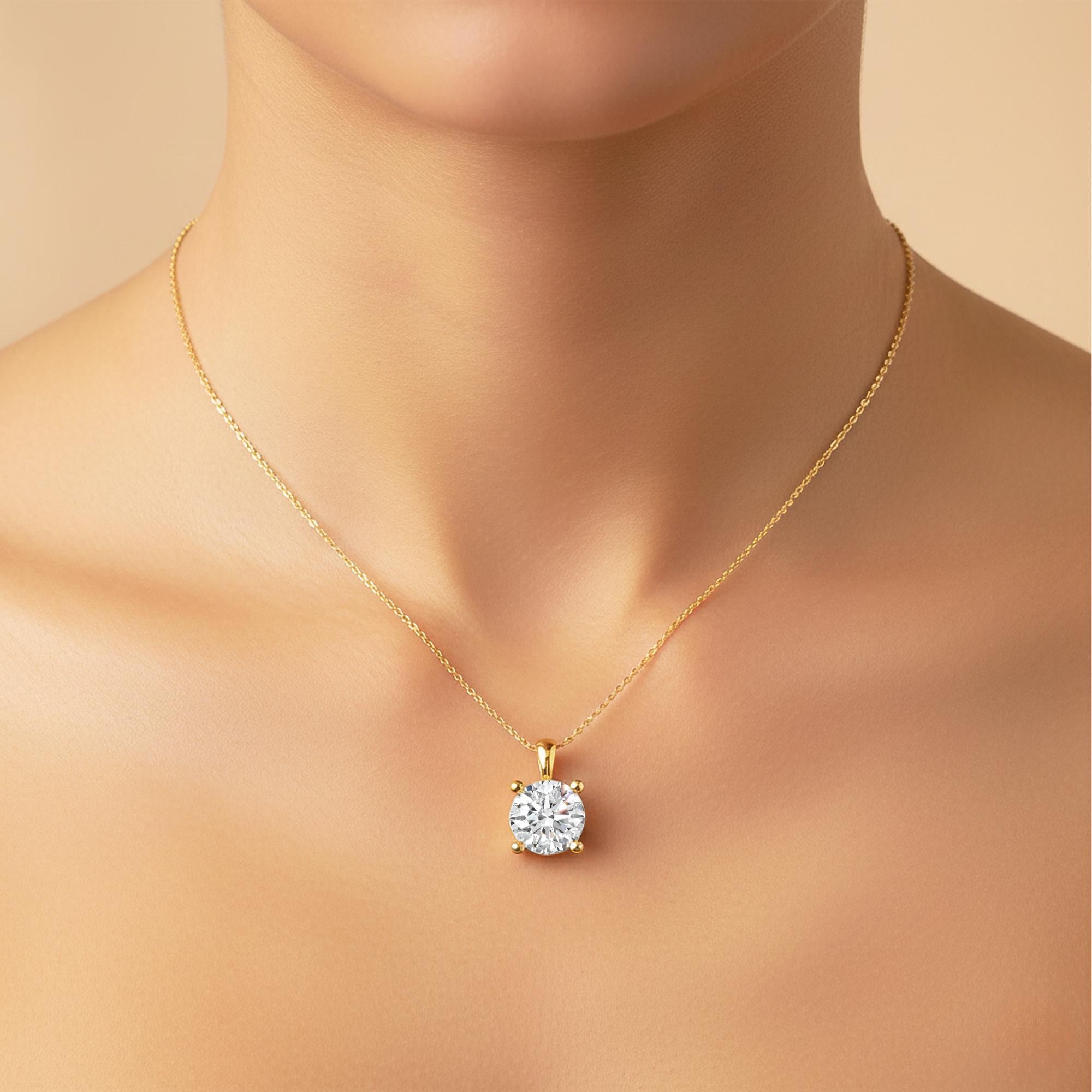 Make a bold statement with this beautiful 4 carat solitaire diamond necklace pendant, made in 14k solid gold! At the center is a round cut lab grown diamond, offering exceptional brilliance. Secured in a classic 4 prong setting, this pendant highlights the diamond’s natural sparkle while maintaining a timeless and refined look!