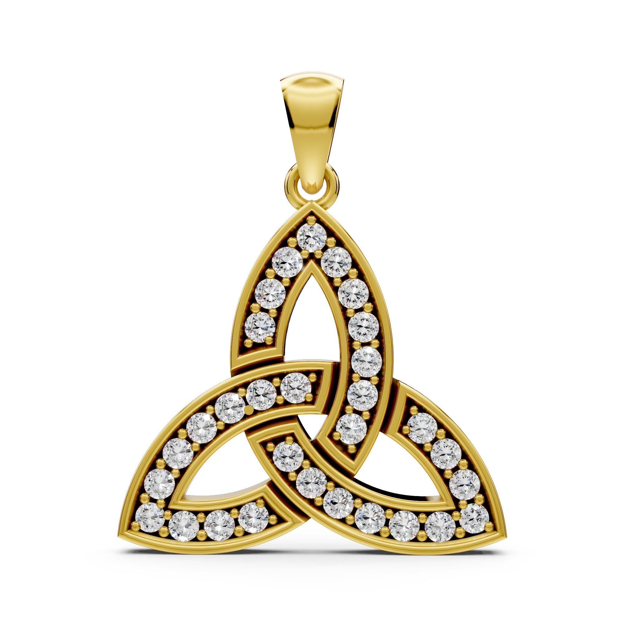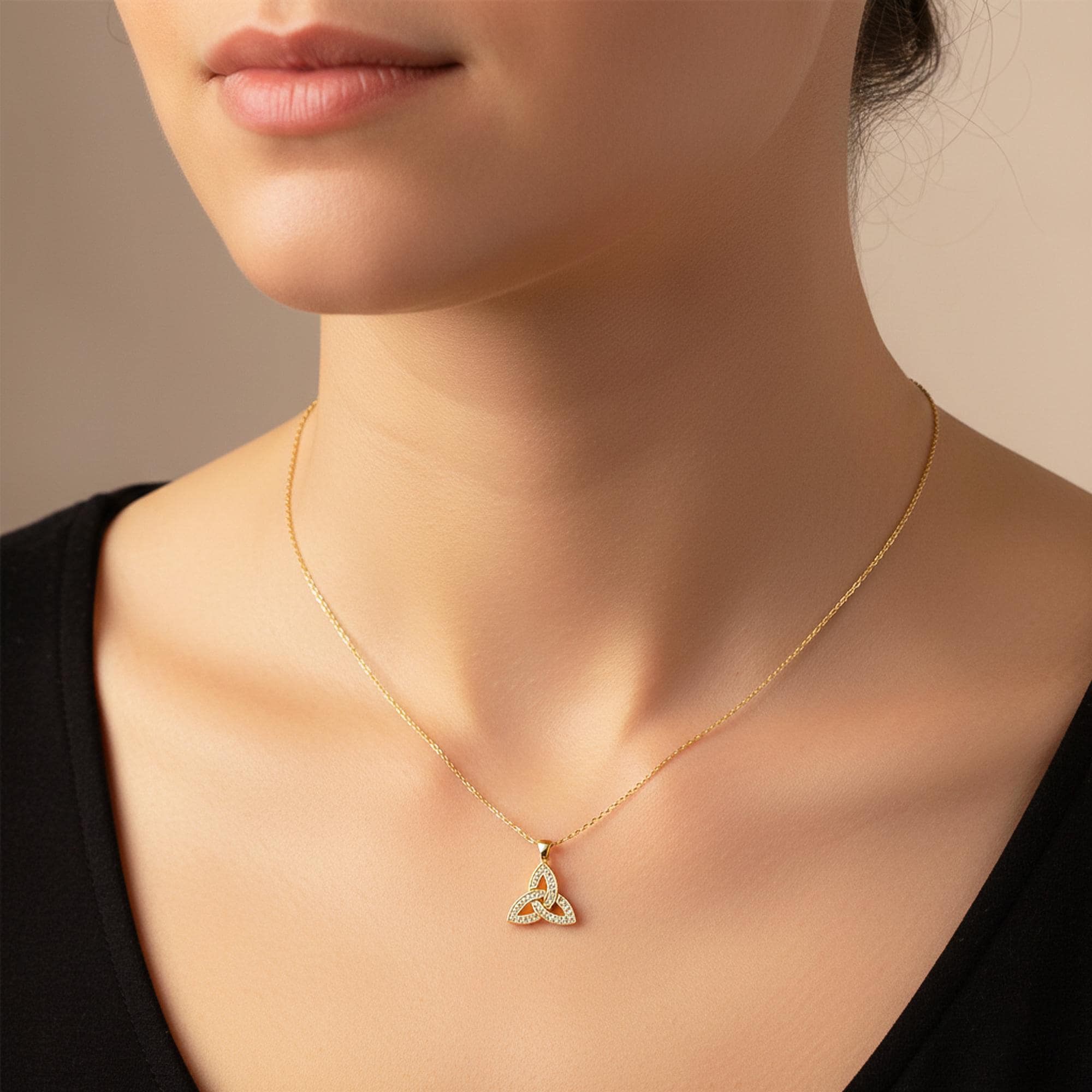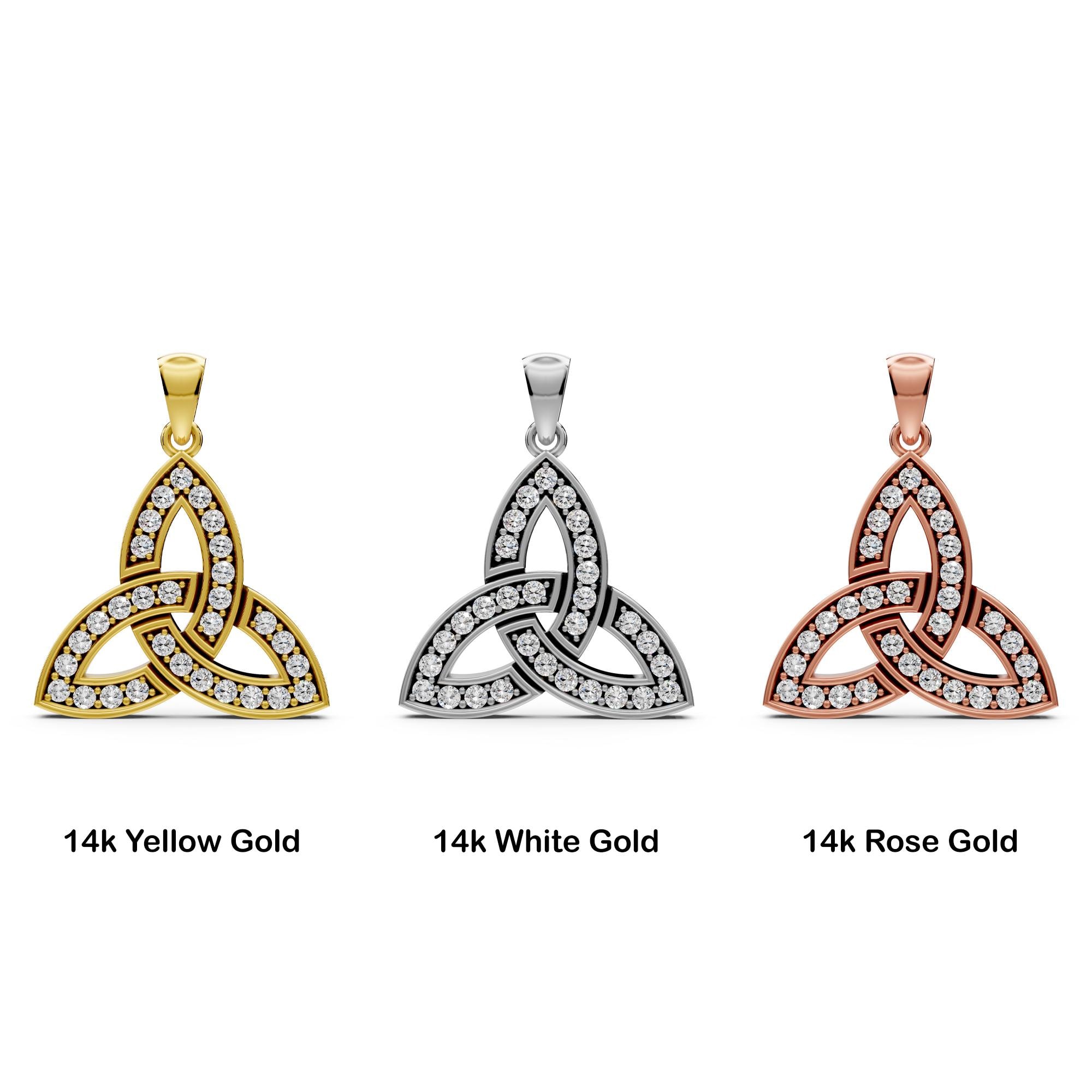 This diamond Celtic triquetra symbol trinity knot pendant is crafted in 14k solid gold! This meaningful Celtic charm necklace features the classic trinity knot design adorned by glistening diamonds. A perfect gift inspired by Irish heritage and symbolism, representing unity, eternity, and strength. Ideal for everyday wear or special occasions!