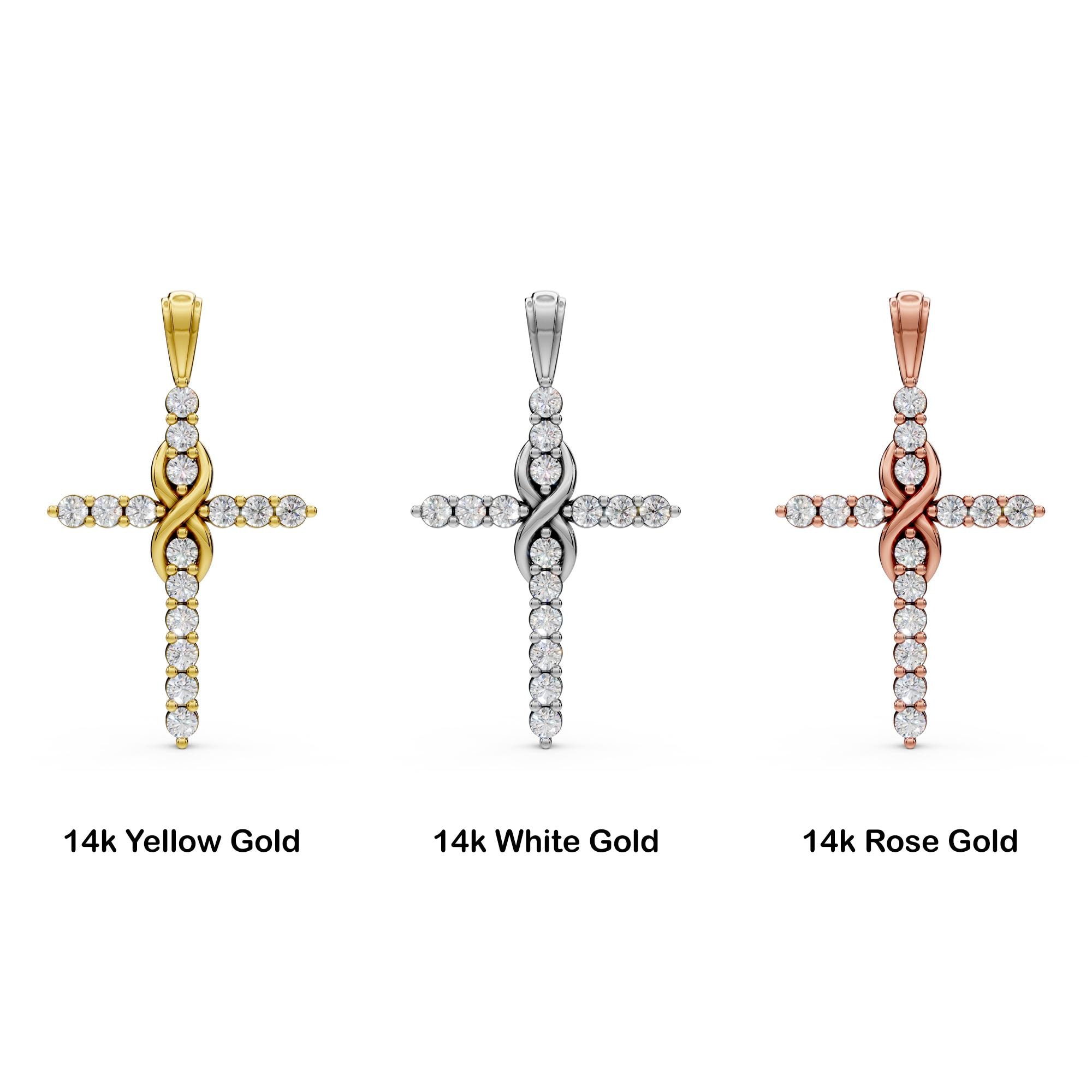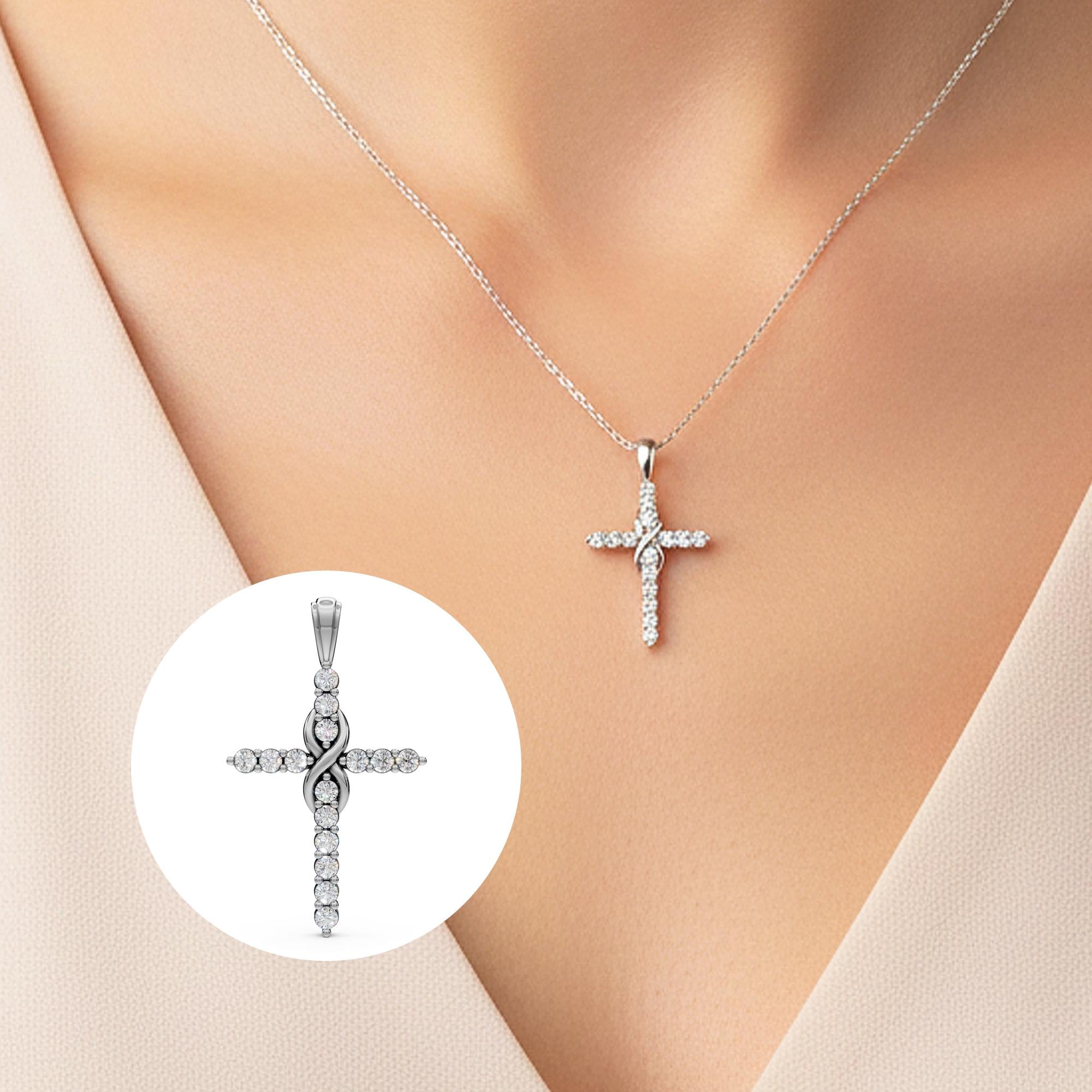 A unique diamond Cross charm made in solid 14k white gold! This beautiful Cross necklace pendant features round-cut lab-grown diamonds for a brilliant, ethical sparkle. A timeless, everyday diamond Cross pendant that makes a meaningful and stylish gift for any occasion!