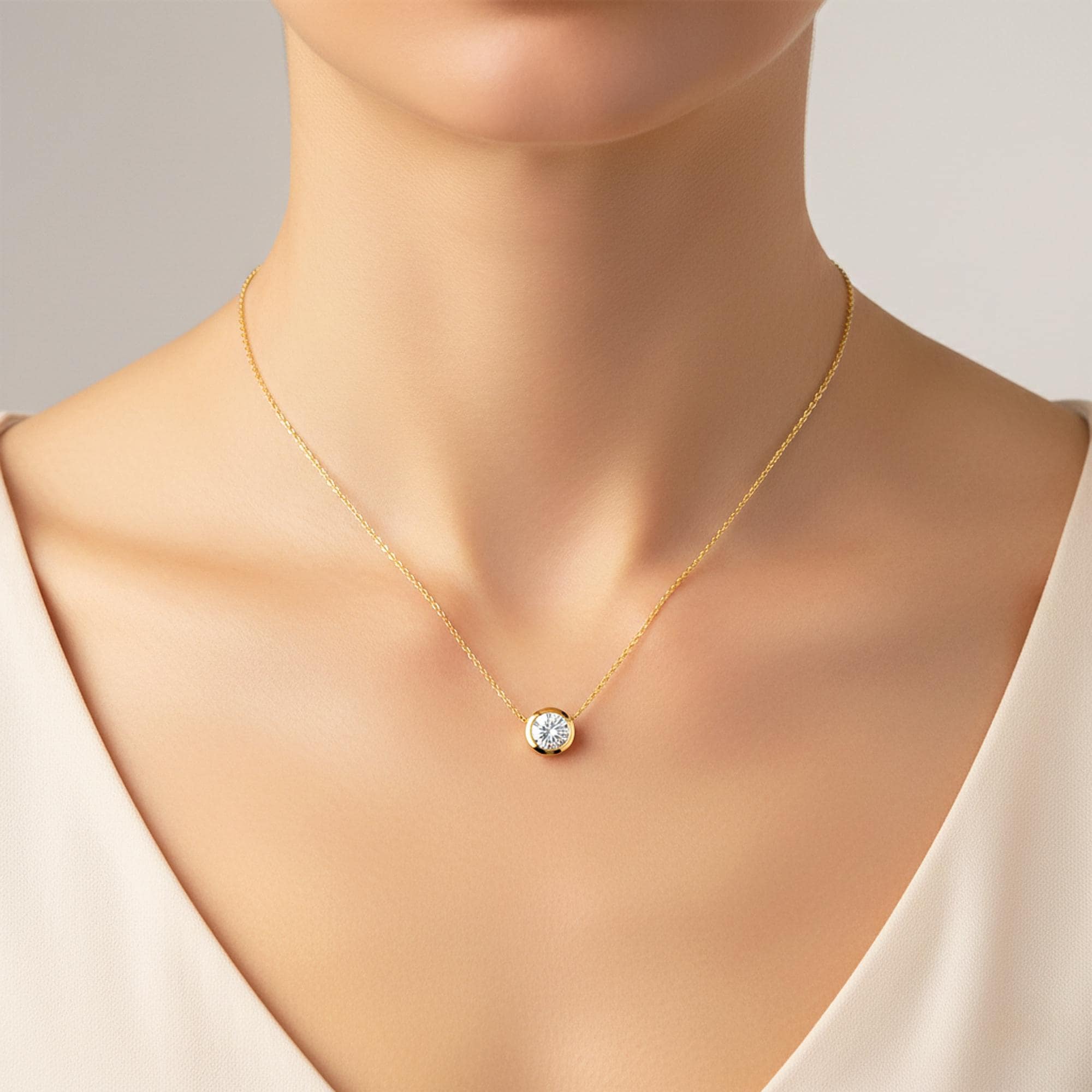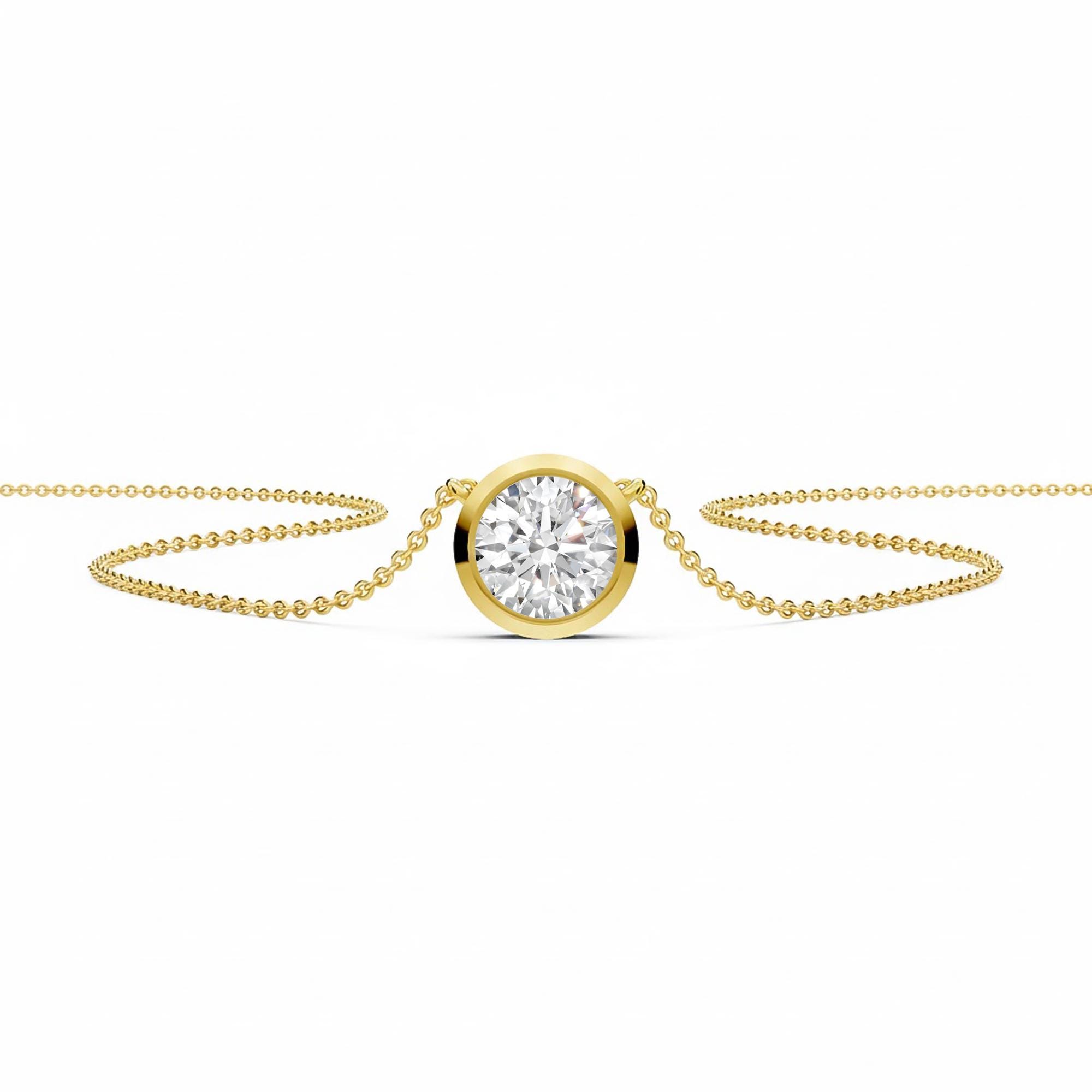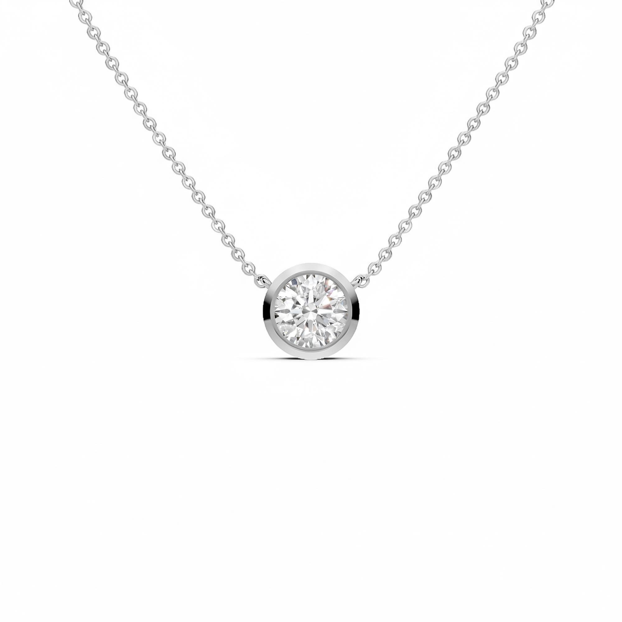 This lab grown diamond solitaire pendant features a brilliant round cut diamond set in a sleek bezel setting, crafted in solid 14k gold! The bezel design offers a clean modern look while securely surrounding the diamond, making this pendant perfect for everyday wear and timeless styling. Available in your choice of yellow, white, or rose gold, this lab grown diamond pendant makes a thoughtful keepsake for weddings, anniversaries, or birthdays!