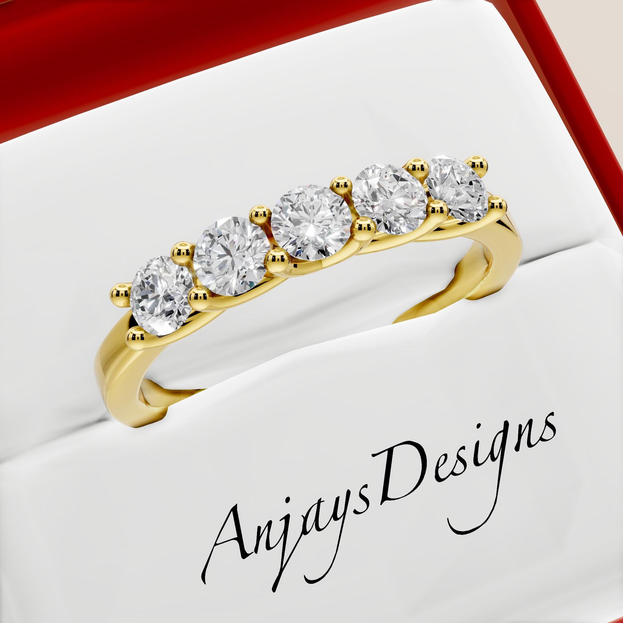 This 5 stone lab grown diamond ring is crafted in solid 14k gold and designed to symbolize lasting love and meaningful milestones! Featuring five brilliant round lab grown diamonds set across the band, this ring offers exceptional sparkle with a balanced and stackable look. Perfect as an anniversary ring, wedding band, or special gift, the clean classic design allows the diamonds to shine while remaining comfortable for everyday wear!