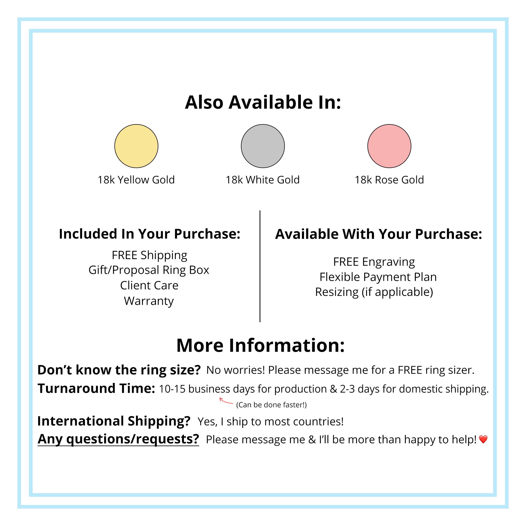 All of the rings you see listed on my store are hand-designed by your very own! I design, manufacture, and ship all of my rings. Being in business for MANY years, I’ve had the chance to make engagement & wedding rings for many beautiful couples around the globe. But don’t just take my word for it, see the 850+ reviews my clients have shared by clicking the ‘review’ tab on my store!