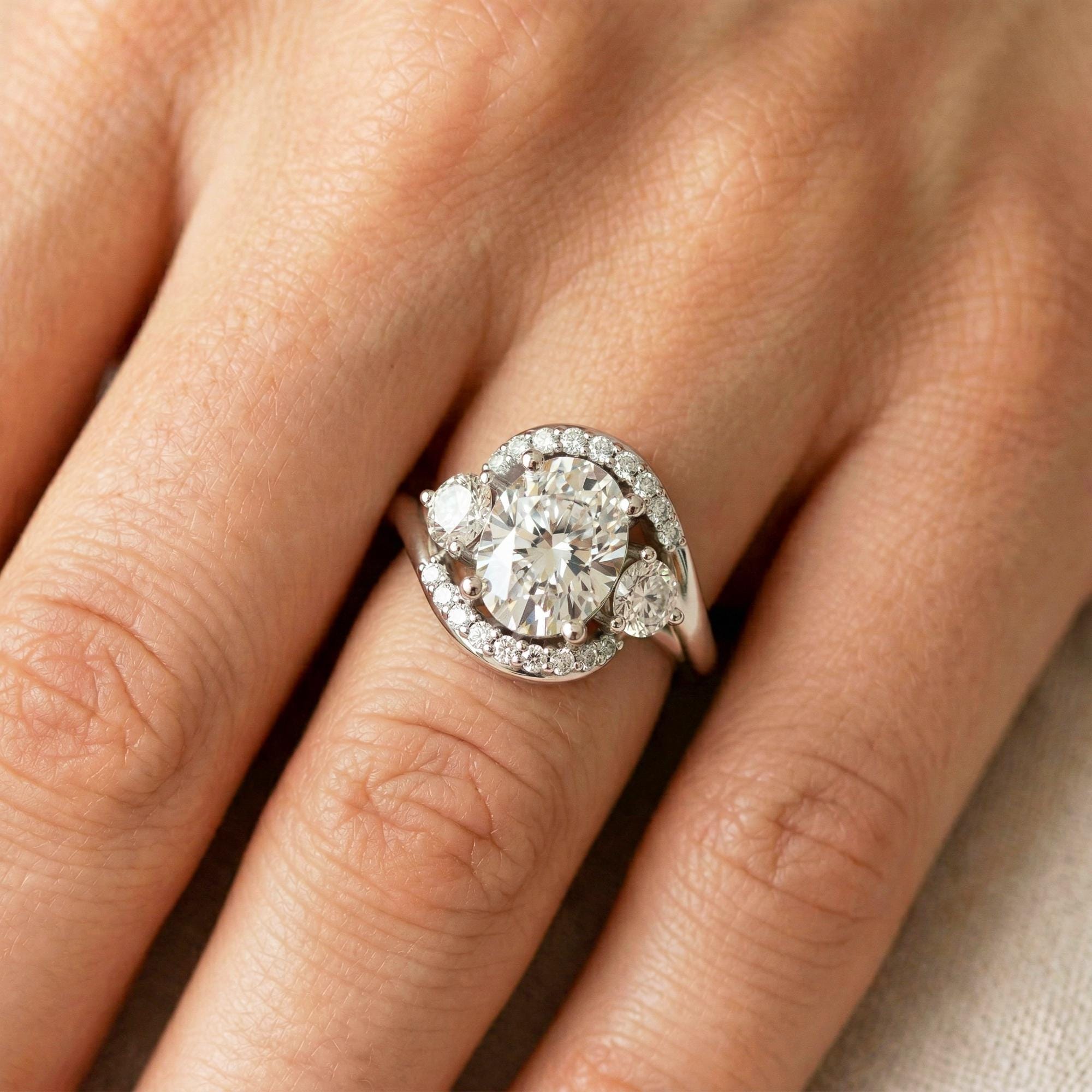 This 1.5 CT oval shaped lab grown diamond engagement ring is crafted in solid 14k white gold and designed for timeless elegance! The elongated oval cut creates a graceful, flattering silhouette while maximizing brilliance and sparkle, making it a classic yet modern choice.