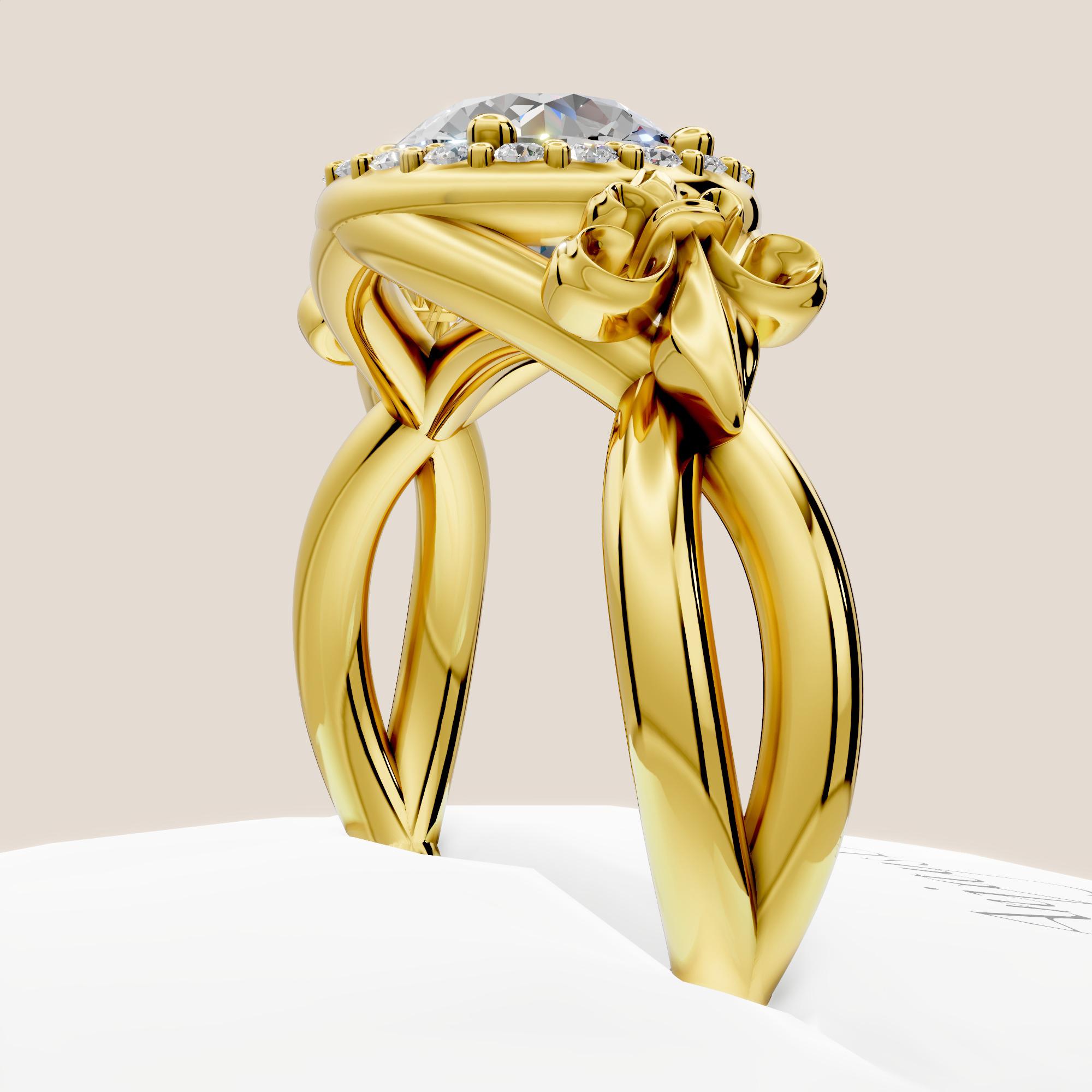 The round cut lab grown diamond offers exceptional sparkle and brilliance, delivering the same beauty and durability as a mined diamond. Set in warm 14k yellow gold, this ring blends classic elegance with unique design, making it a distinctive and meaningful choice for a unique engagement ring!