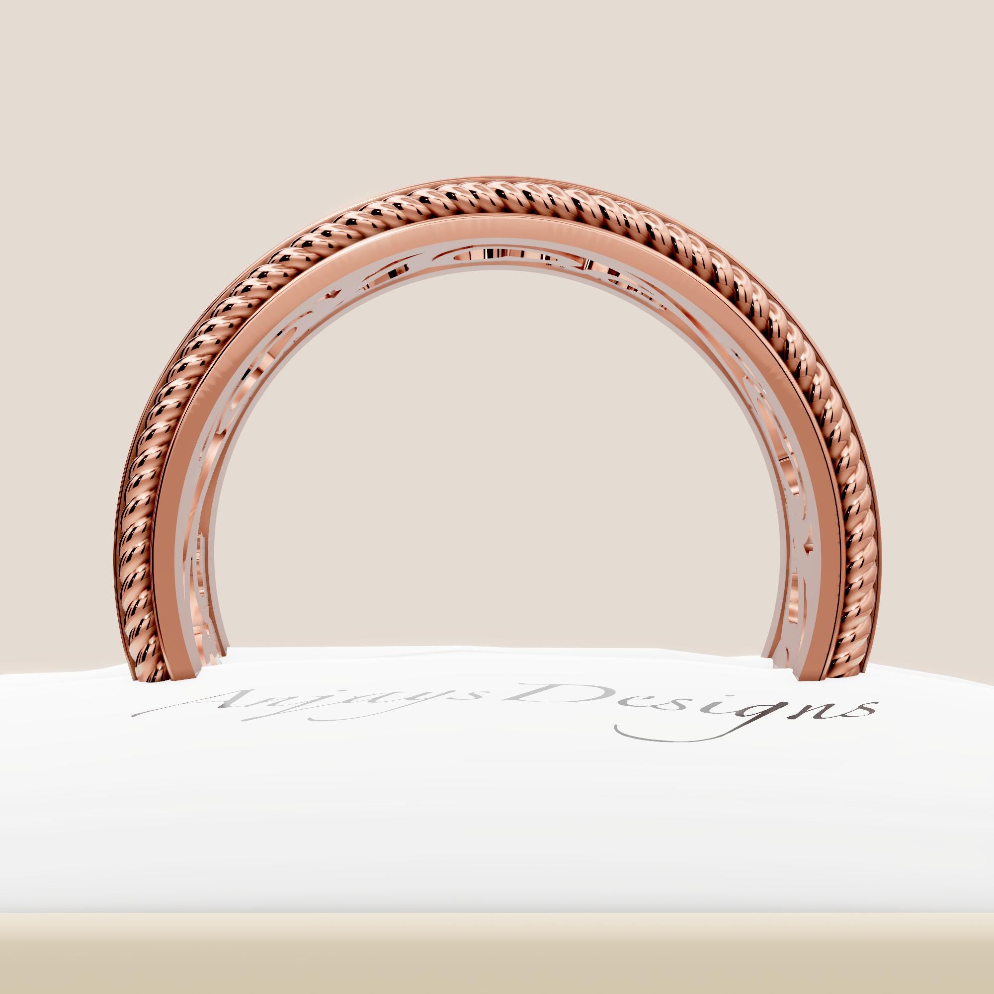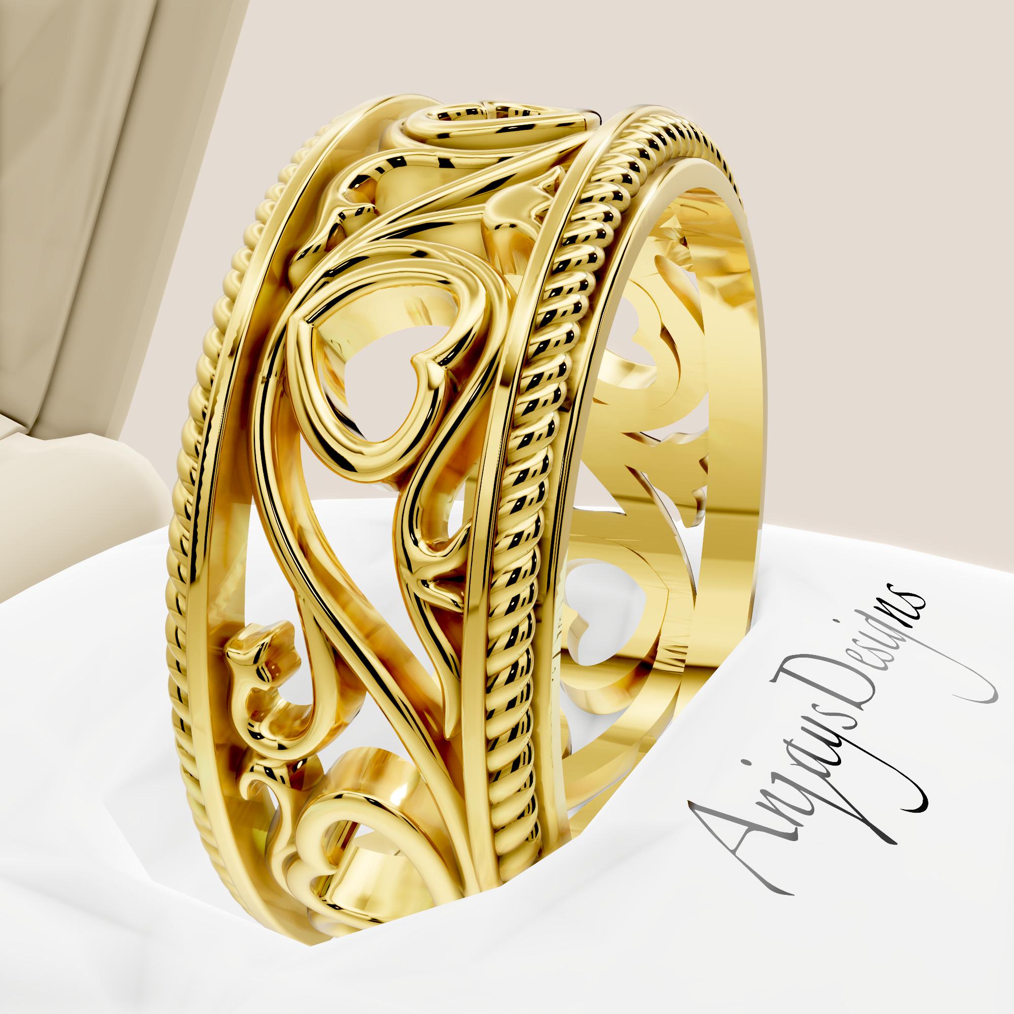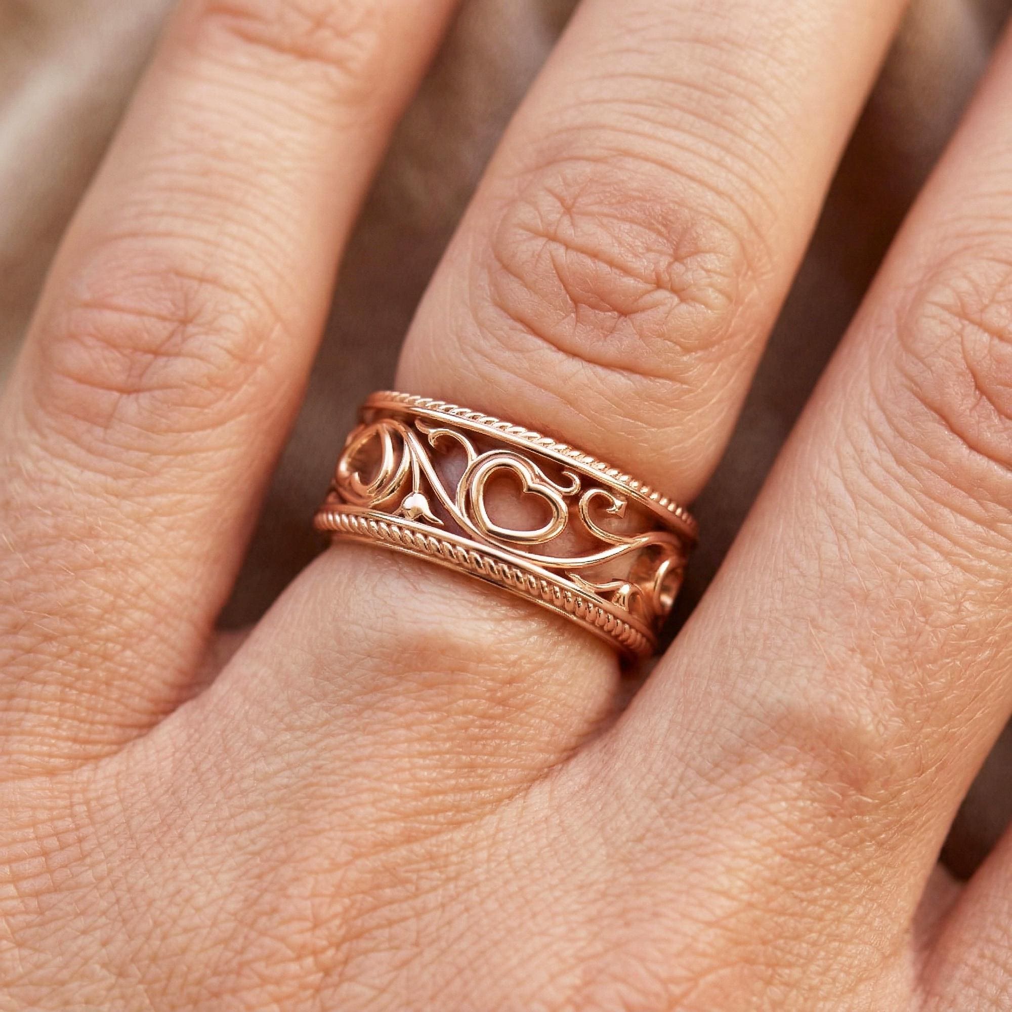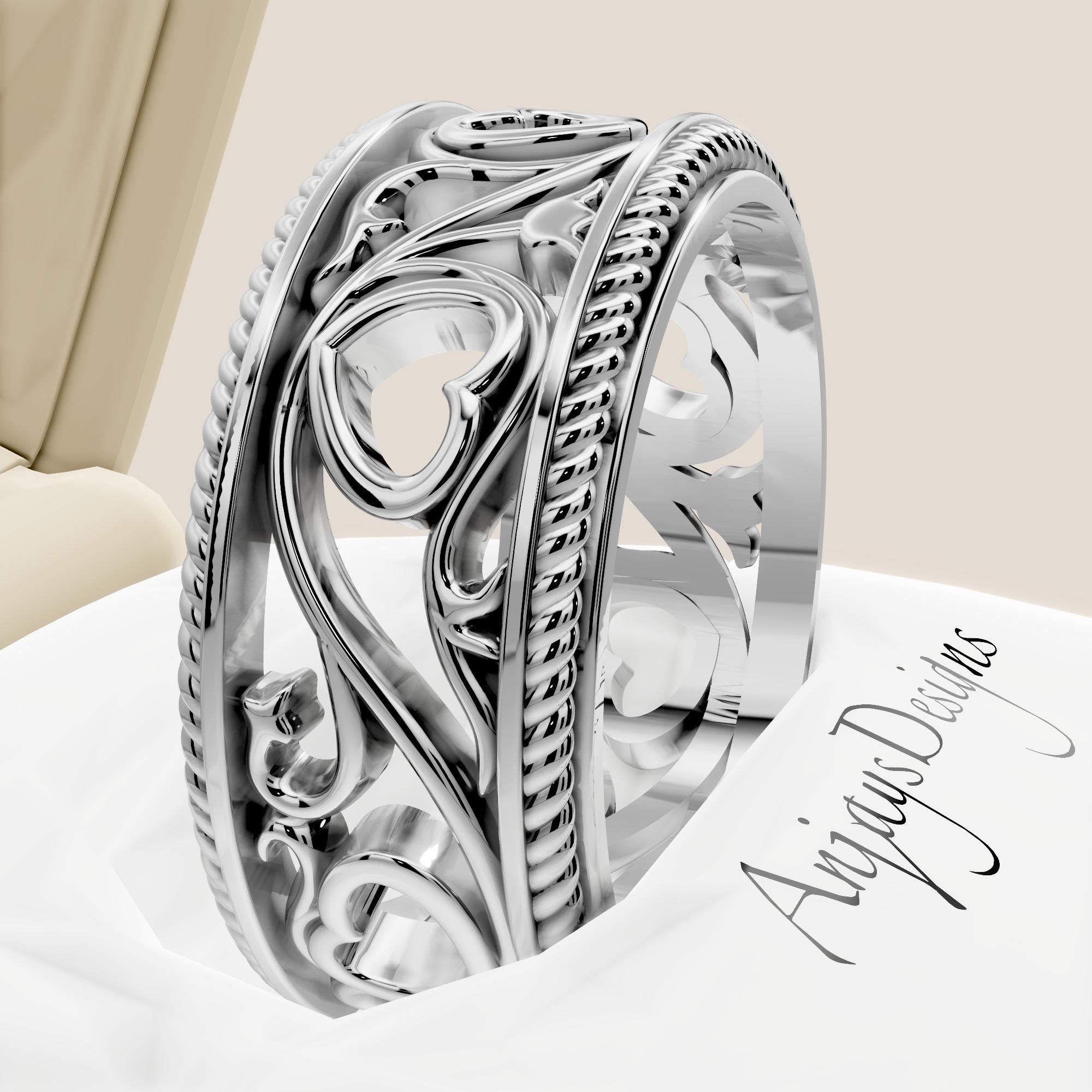 This nature inspired wedding band is crafted in solid 18k rose gold and features a delicate heart shaped design that symbolizes forever love and connection! The flowing, eternity pattern gives the ring a soft and romantic feel, making it a meaningful and elegant choice for an anniversary or wedding ring. Designed for comfort and everyday wear, this band blends simplicity with symbolic beauty!