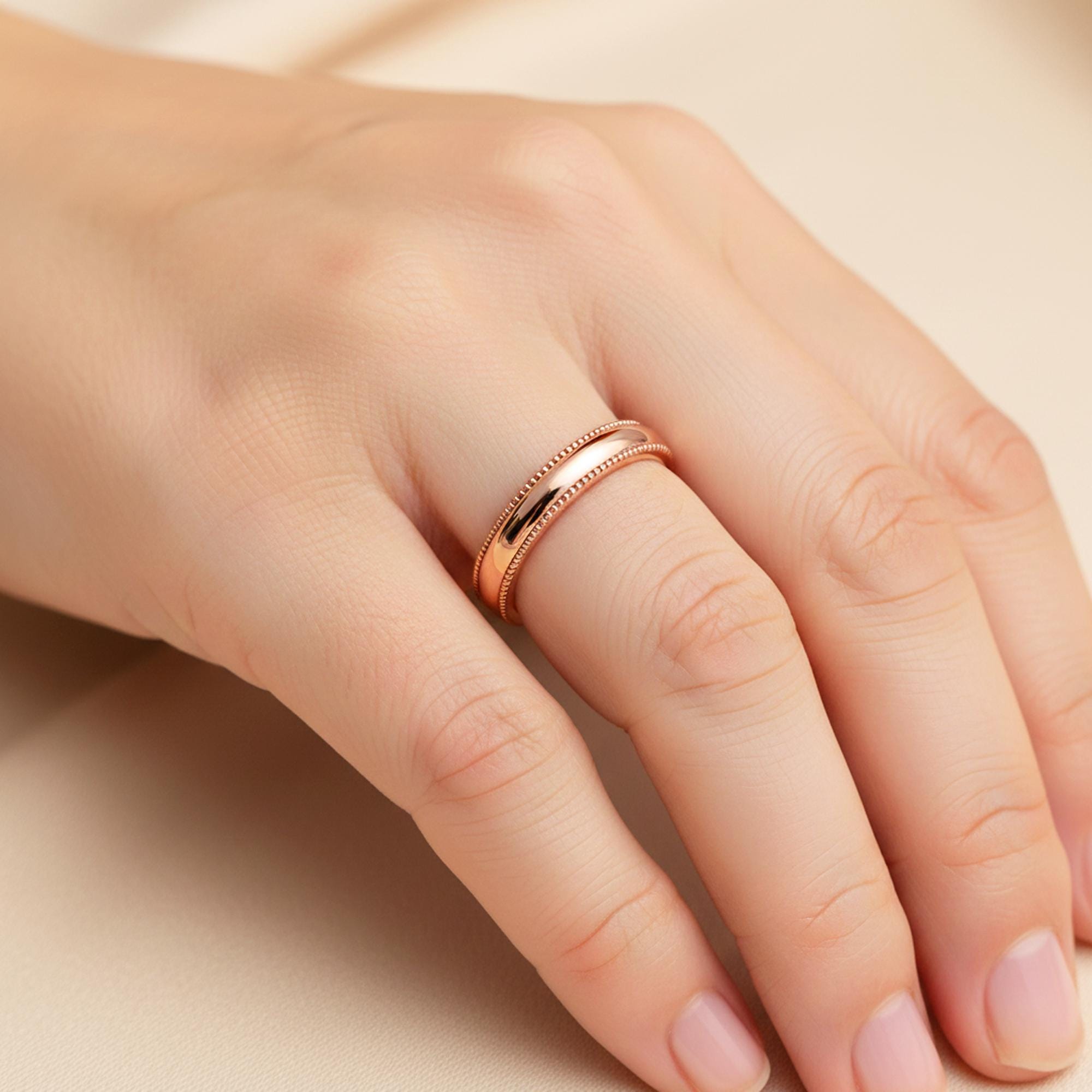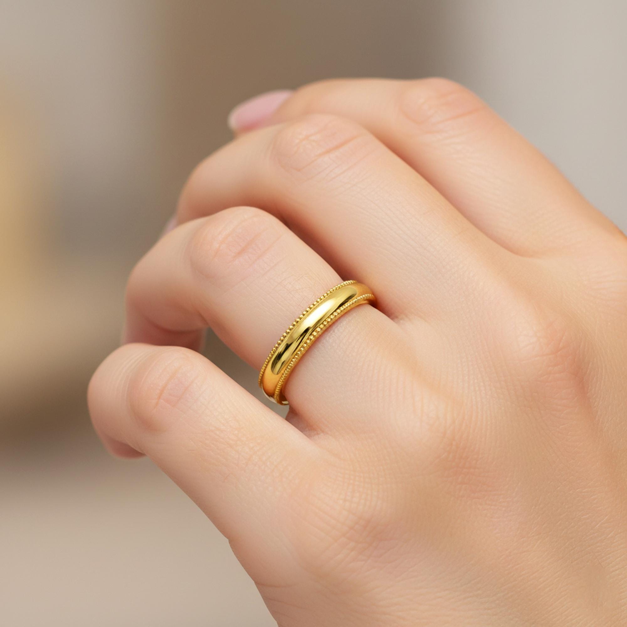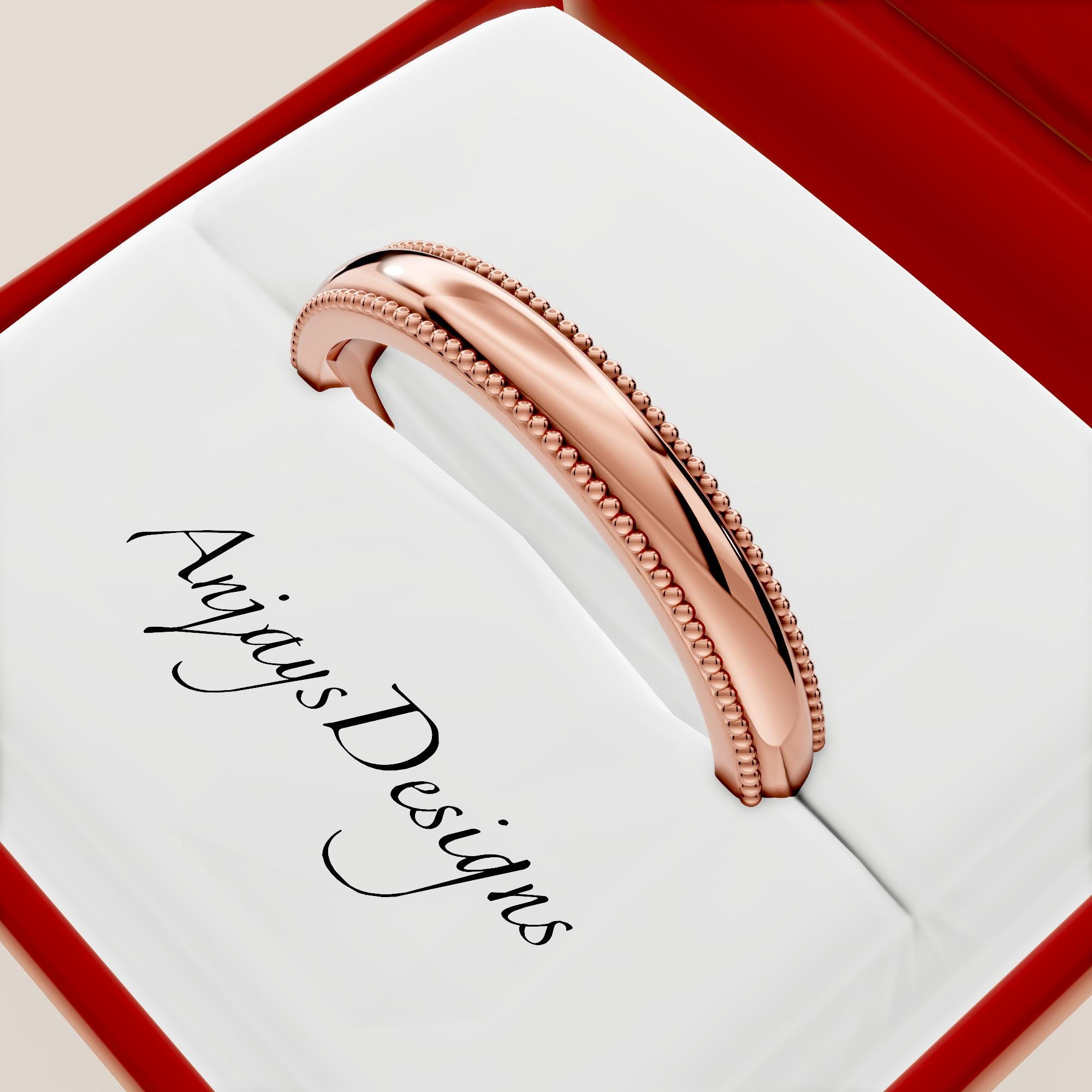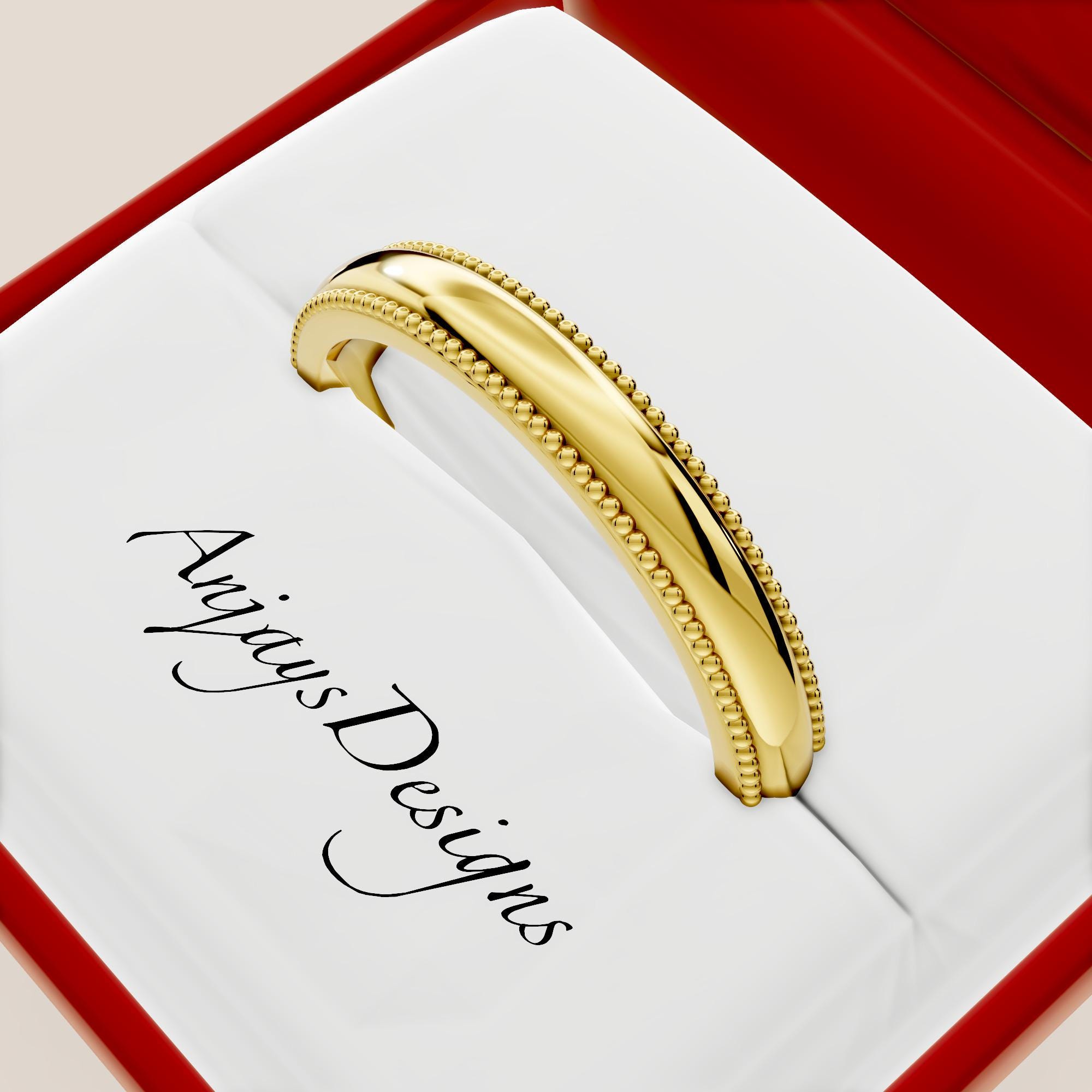 Elevate your commitment with our Plain Milgrain Gold Wedding Band, a timeless 14K Solid Gold piece designed for elegance and simplicity. This Classic Women Wedding Band features a delicate Milgrain Edge, adding subtle texture to its minimalist ring design. Crafted in durable 14K solid gold, this wedding band offers a refined, understated look perfect for everyday wear or stacking. Ideal for those who cherish classic style, this Milgrain edge minimalist ring is a lasting symbol of love. Shop now for a 14K solid gold plain Milgrain wedding band that blends tradition with modern sophistication!